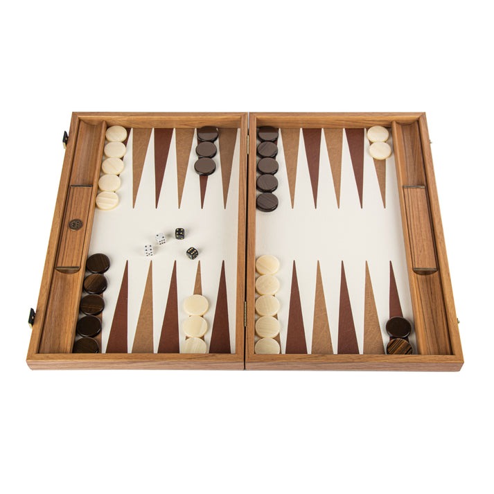 Entdecken Sie die ultimative Raffinesse mit diesem Backgammon aus elfenbeinfarbenem Kunstleder mit brauner Oberfläche, entworfen für Liebhaber hochwertiger Gesellschaftsspiele.