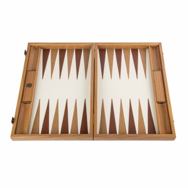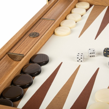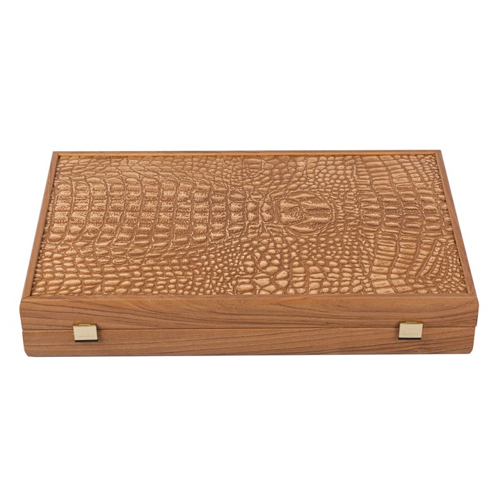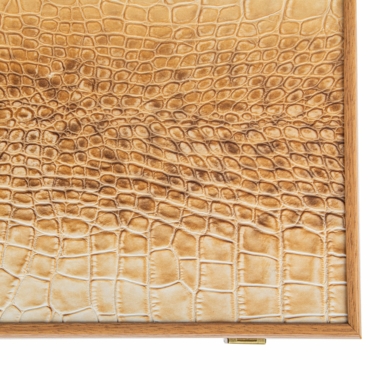 Backgammon aus Kunstleder in Krokodiloptik Elfenbein und Braun – Luxuriöses Spiel mit Perlensteinen