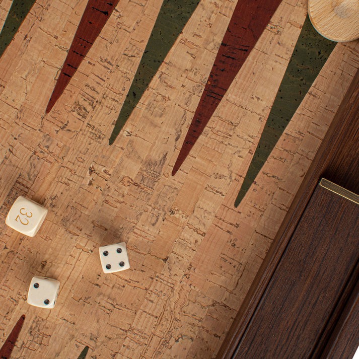 Backgammon aus natürlichem Kork mit Olivenholzspielsteinen