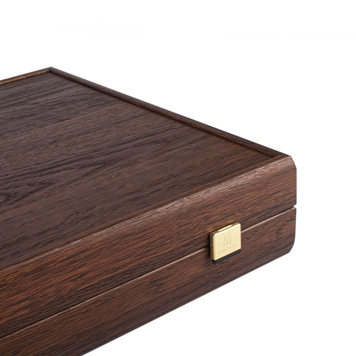 Die Spielsteine aus Olivenholz, insgesamt 30, sind sorgfältig poliert, um einen angenehmen Griff und ein flüssiges Spiel zu bieten. Dieses Set beinhaltet außerdem vier Würfel und einen Doublwürfel, ein Paar Würfelbecher aus Holz vervollständigt dieses Set und ermöglicht eine elegante und praktische Aufbewahrung aller Zubehörteile.