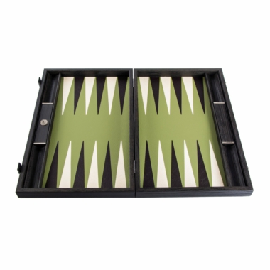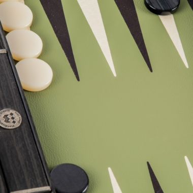 Backgammon aus ökologischem Kunstleder in Olivgrün – Luxusset 48 x 30 cm