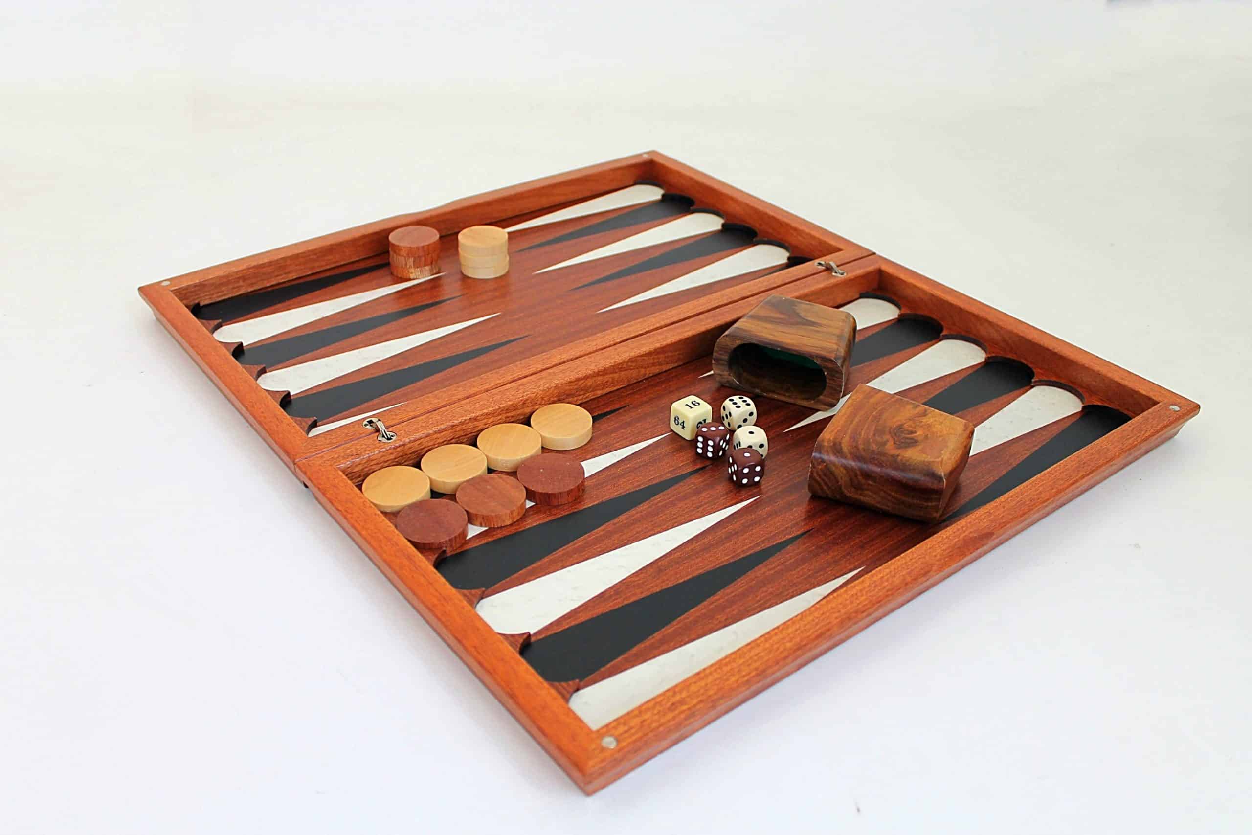 Ein schönes Backgammon-Set aus Holz mit vielen Details und einer Auswahl an hochwertigen Materialien.
