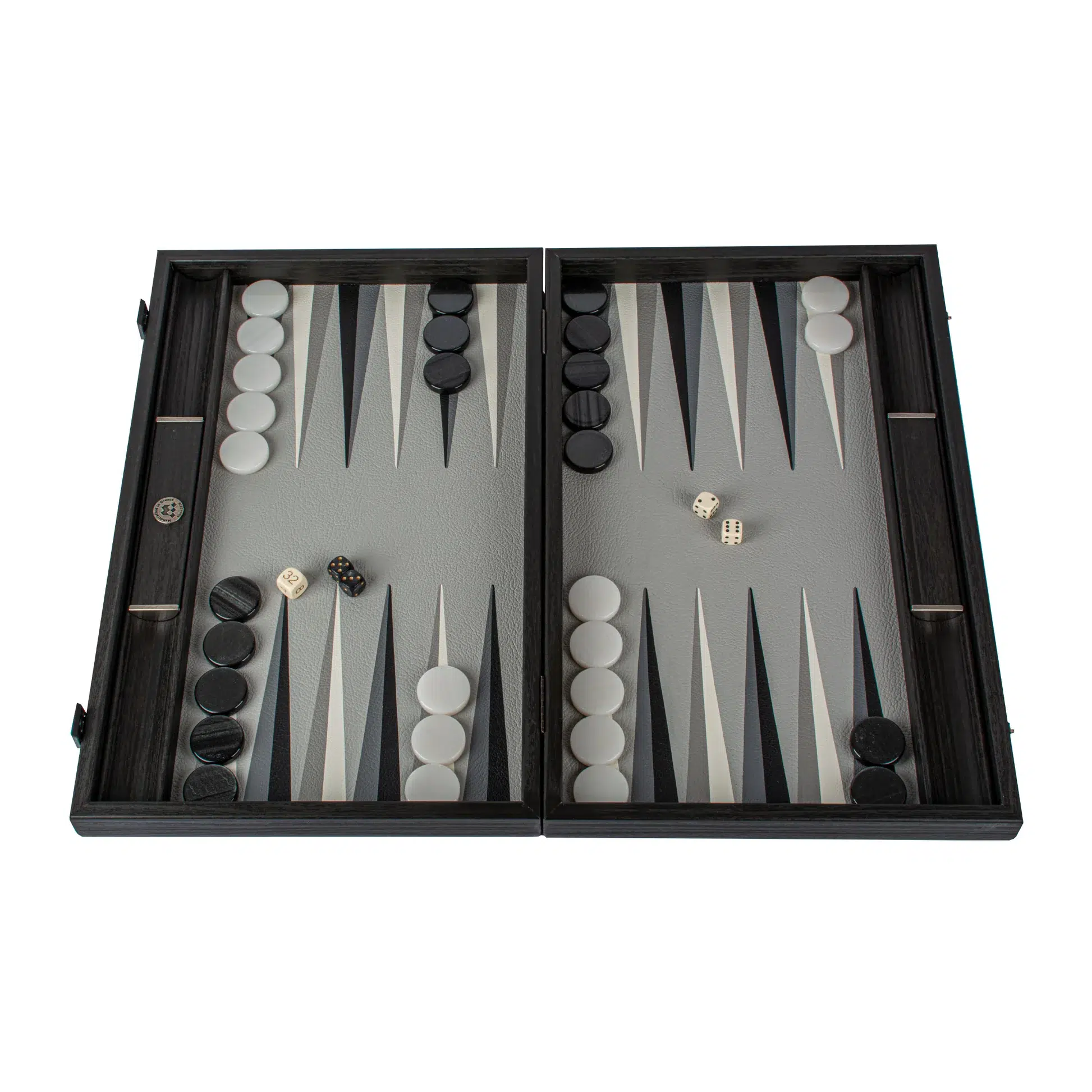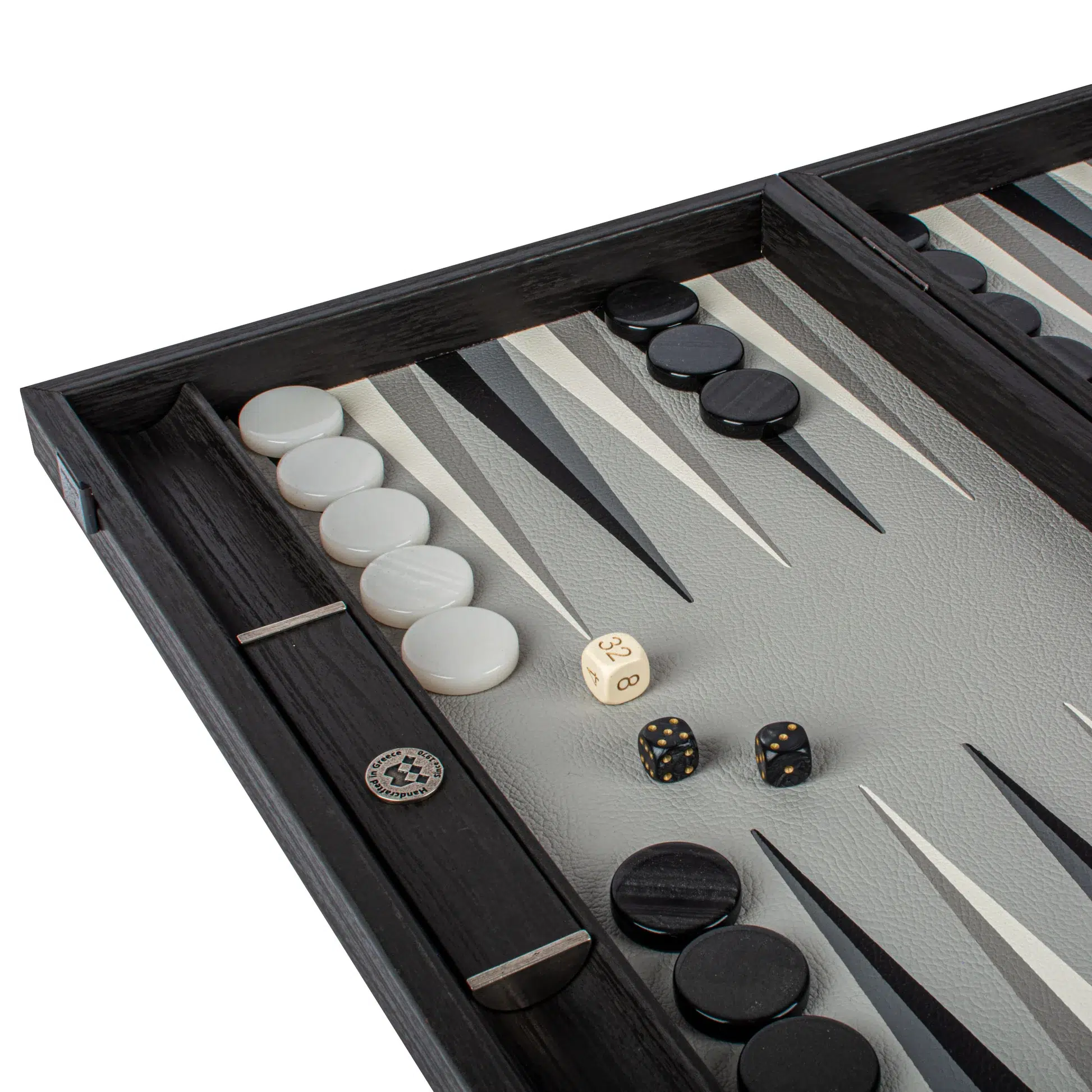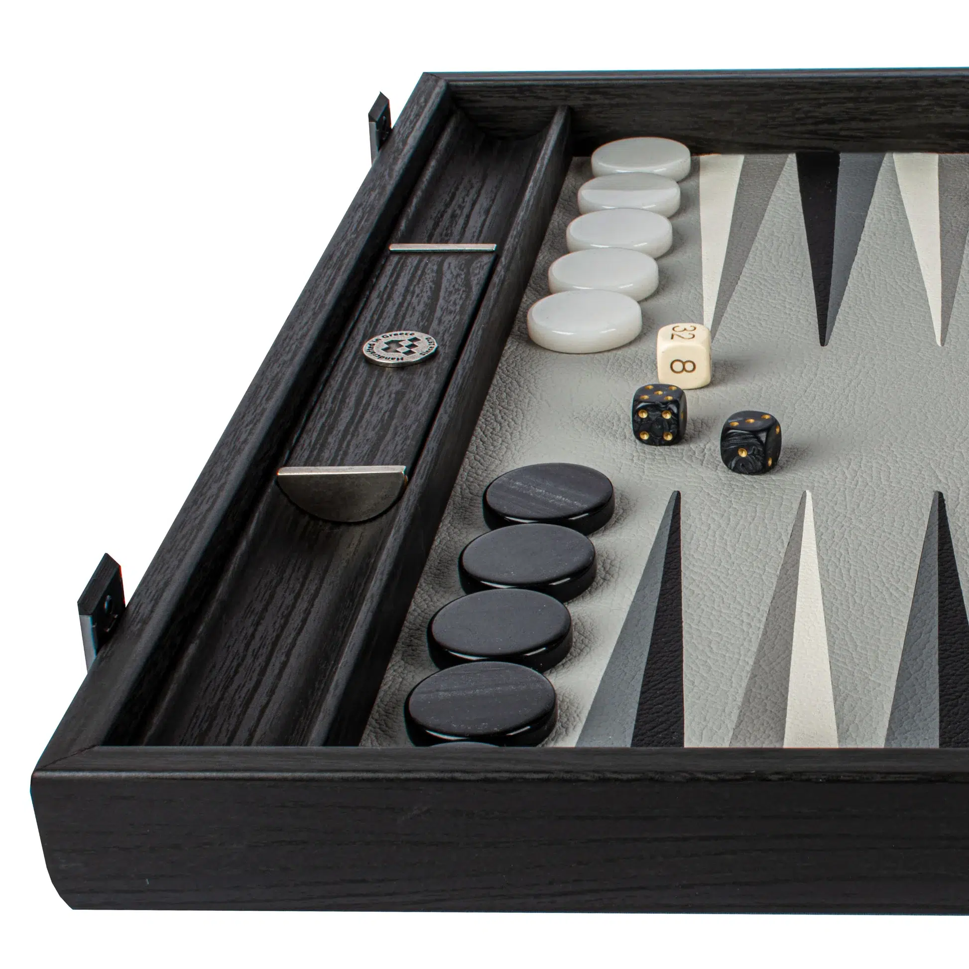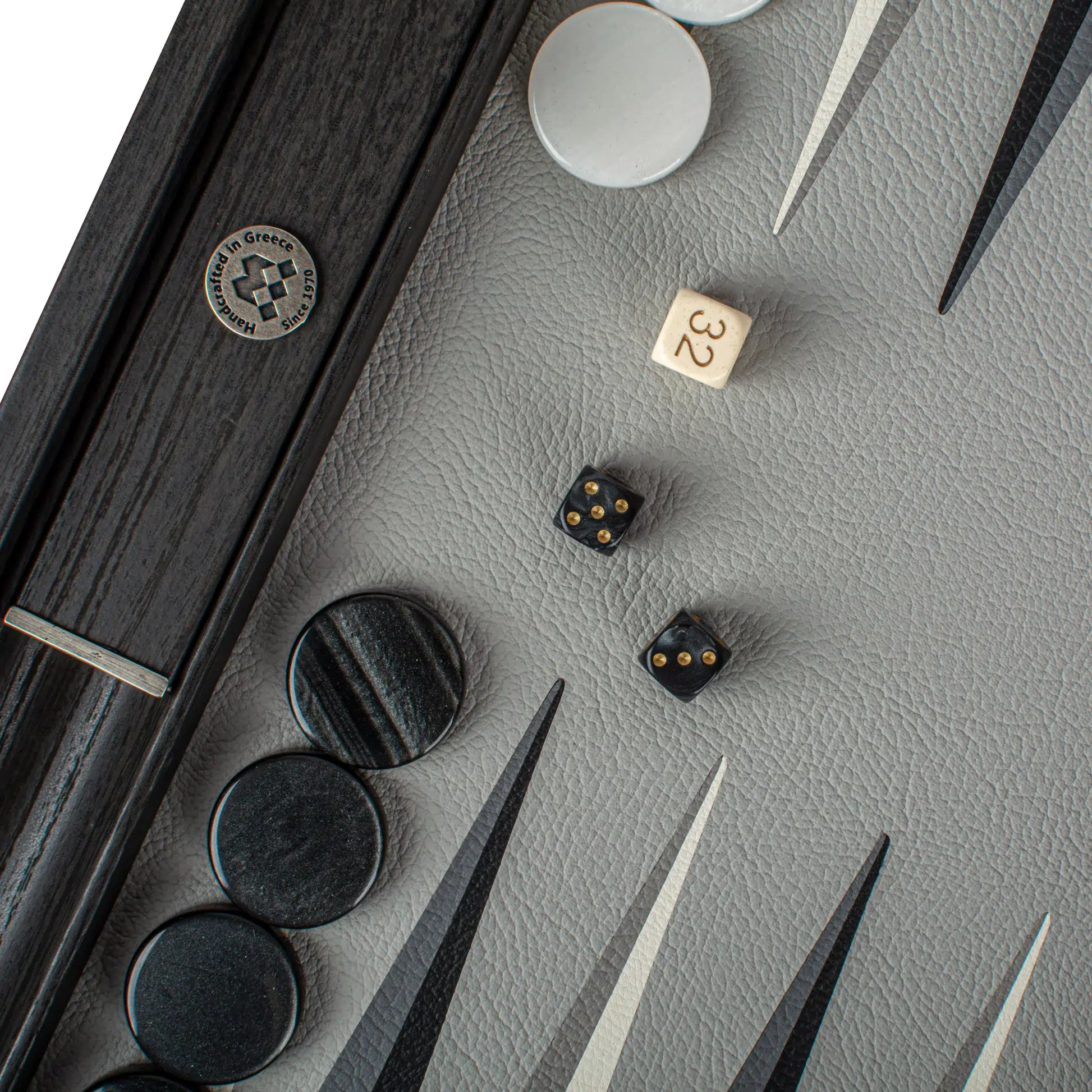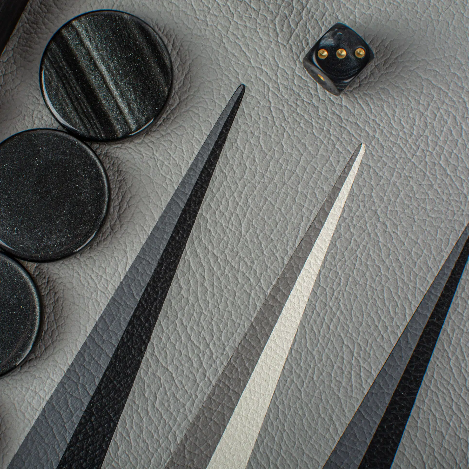 Backgammon-Set aus Kunstleder Trilogie in Grau
