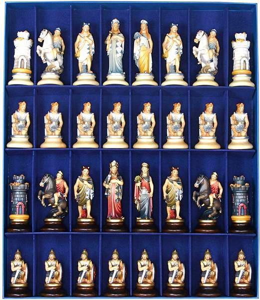 Ein Sammlerset von Schachfiguren, hergestellt von experten Künstlern der Kunstschulen von Ortisei und Selva Gardena.