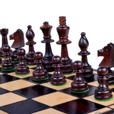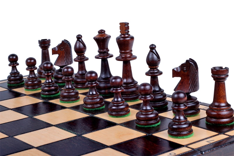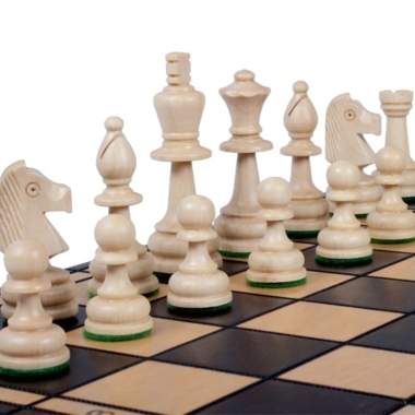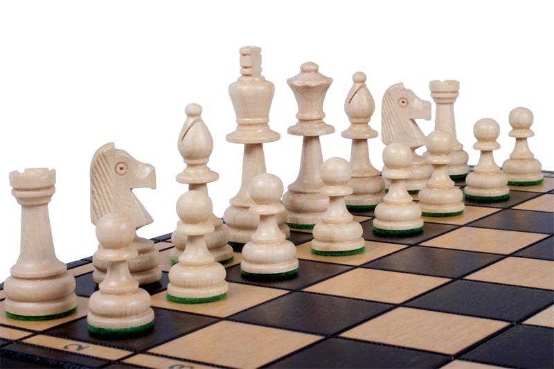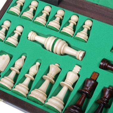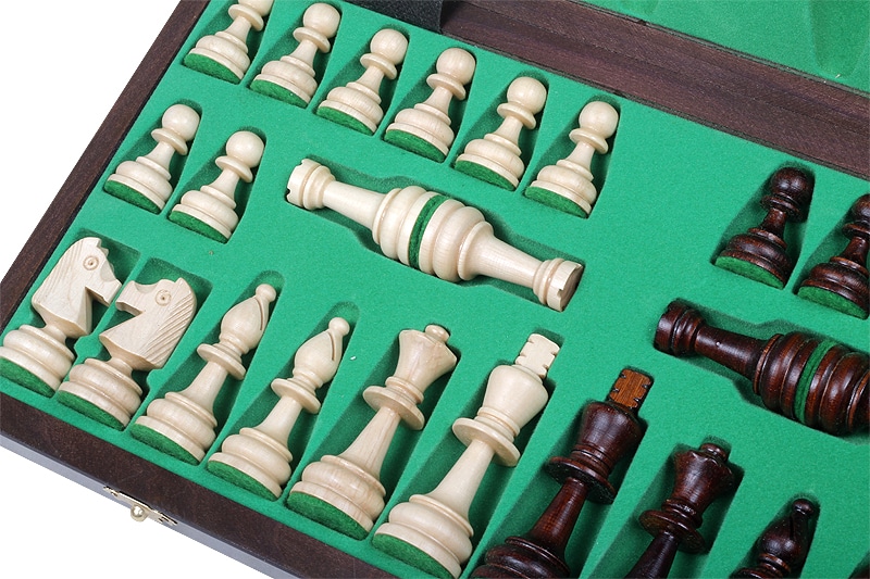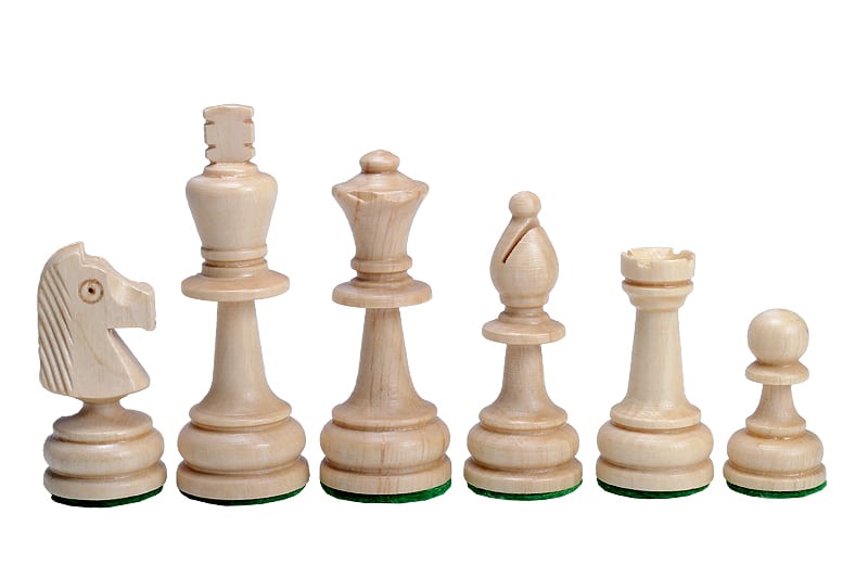Die Schachfiguren sind aus Ahornholz gefertigt und haben eine Höhe des Königs von 8 cm.