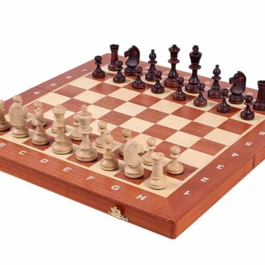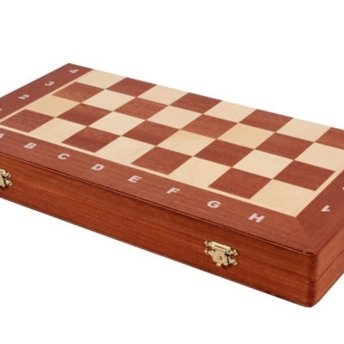 Es wird von einem klappbaren Schachbrett aus Mahagoni und Sykomore mit den Maßen 42 x 42 x 2,5 cm im geöffneten Zustand (42 x 21 x 5 cm gefaltet) begleitet. Es verfügt über ein Fach unter dem Spielbrett zur Aufbewahrung der Schachfiguren.