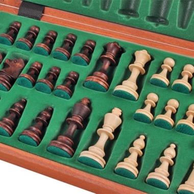 Klappschachbrett und Schachspiel aus Holz Größe 4 mit Aufbewahrung