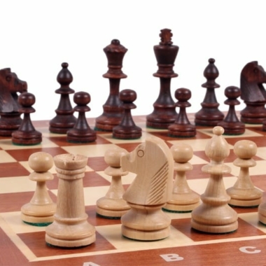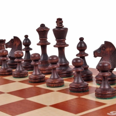 Ein Schachspiel aus Holz der Größe 4, bestehend aus Schachfiguren aus Holz mit Charme und einer Könighöhe von 8 cm.