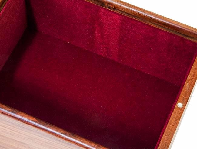 Die Aufbewahrungsbox ist aus goldenem Rosenholz gefertigt.