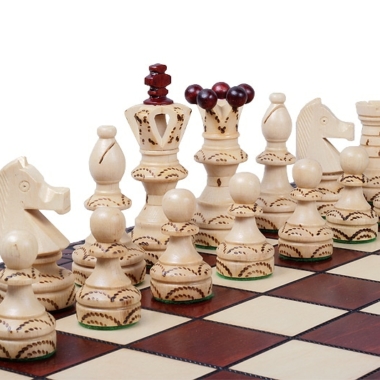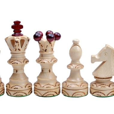 Die schönen Schachfiguren sind aus Ahorn- und Sykomorenholz gefertigt und haben eine Könighöhe von 11 cm. Wie das Schachbrett profitieren sie von schönen Verzierungen.