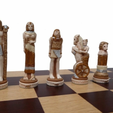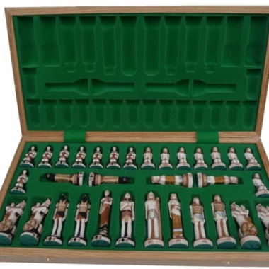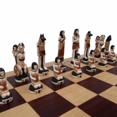 Große Figuren Ägypten und Klappschachbrett aus Holz mit Aufbewahrung