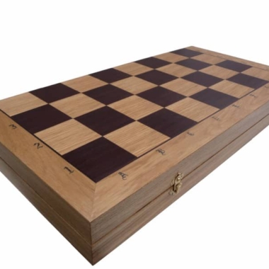 Das klappbare Schachbrett ist mit Mahagoni- und Sykomorenholz eingelegt. Es verfügt über einen individuellen Stauraum für jedes Stück des Schachsets. Sehr groß, das Schachbrett misst 65 x 65 x 3,5 cm geöffnet (65 x 32,5 x 7 cm geschlossen), es kann leicht transportiert und verstaut werden.