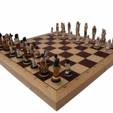 Große Figuren Ägypten und Klappschachbrett aus Holz mit Aufbewahrung
