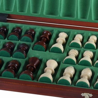 Es besteht aus Staunton-Schachfiguren, die aus Ahornholz gefertigt sind und eine Könighöhe von 11,5 cm haben. Die Schachfiguren haben ebenfalls einen Filz unter ihrer Basis, sind jedoch nicht beschwert.