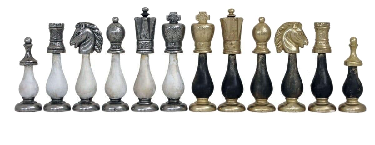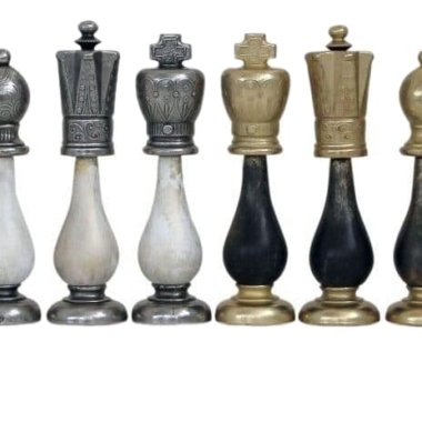 Das Schachspiel ist aus Holz und Metall handgefertigt in schwarz und weiß. Mit einer Könighöhe von 10,2 cm sind die Figuren sehr gut gewichtet.