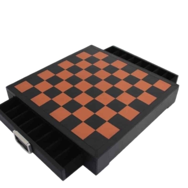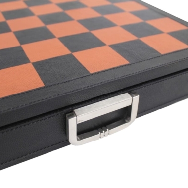 Sie werden von einem Schachbrett von 48 x 48 cm begleitet, das aus echtem italienischem Leder gefertigt ist. Es umfasst eine Aufbewahrungsbox, um das gesamte Set der Schachfiguren zu lagern.
