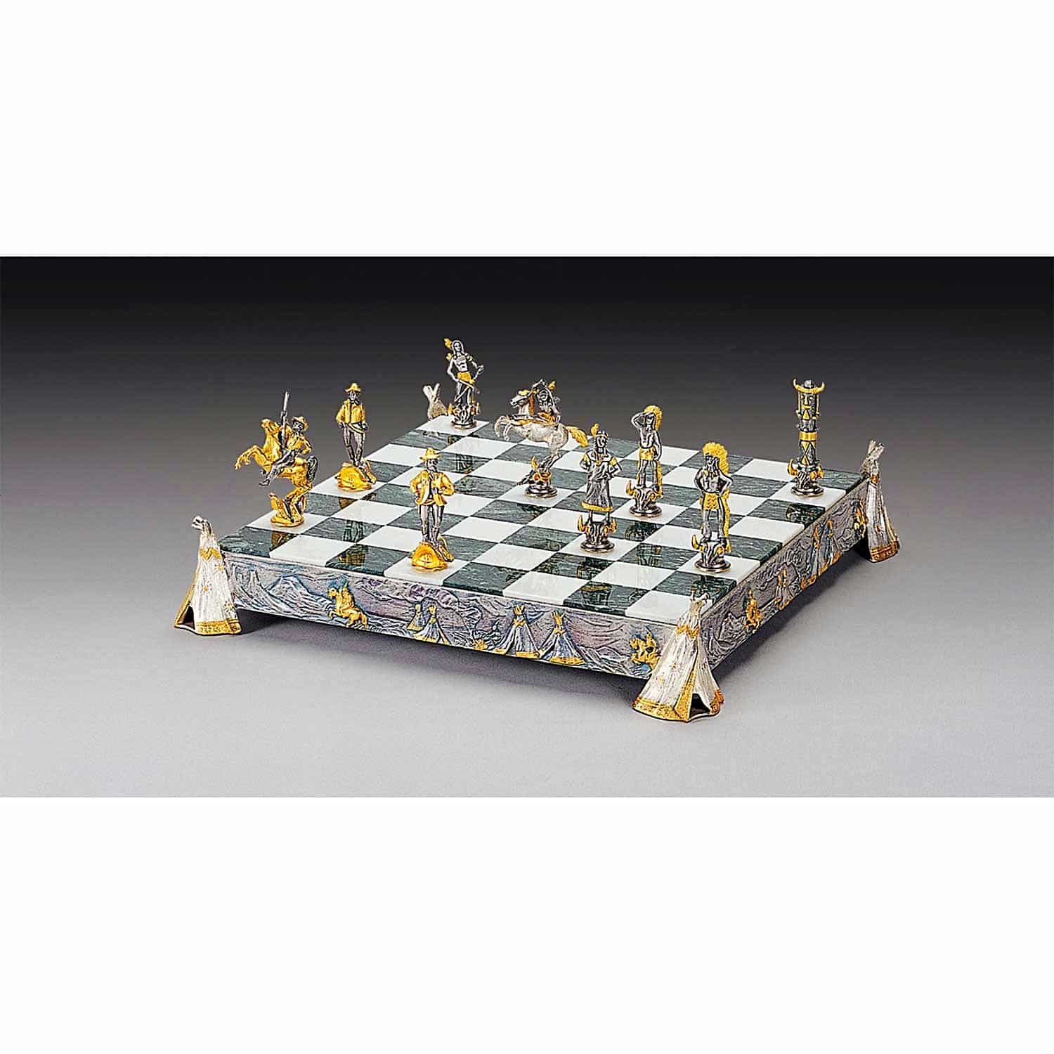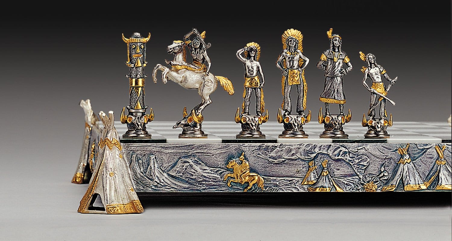 Oberfläche : 24 Karat Gold. Die Füße des Schachbretts sind in Form von Indianer-Tipis gestaltet.
