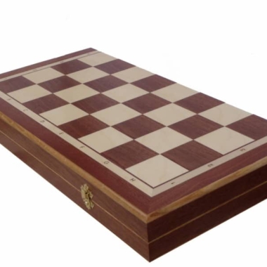 Sie werden mit einem klappbaren Schachbrett aus Mahagoni und Sykomore geliefert, das eine Größe von 60 x 60 x 4 cm offen (60 x 30 x 8 cm geschlossen) hat. Das Schachbrett umfasst ein individuelles Aufbewahrungsfach für jedes Stück, sodass es einfach zu transportieren und leicht zu verstauen ist.