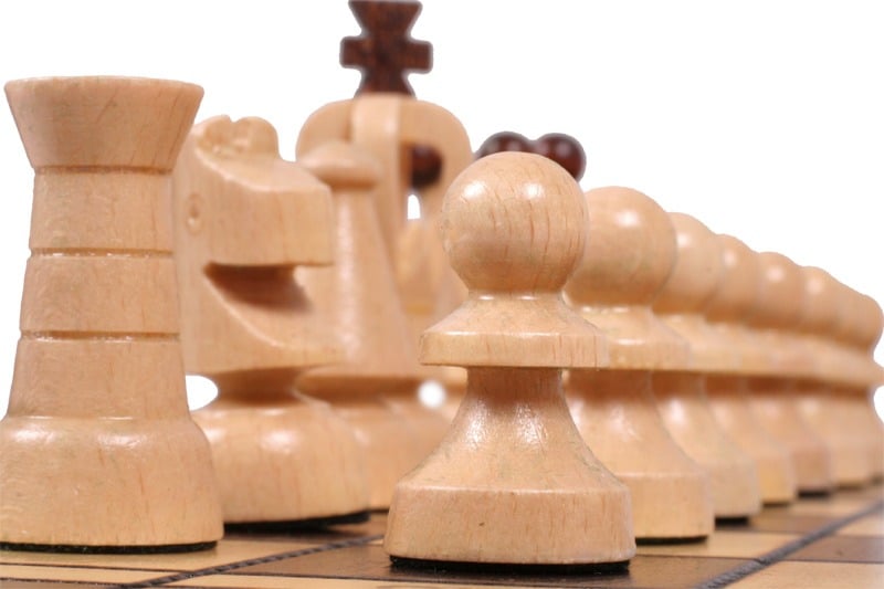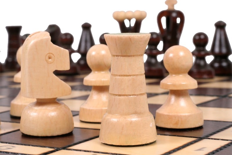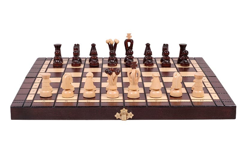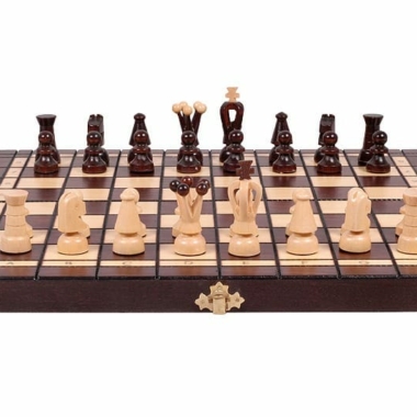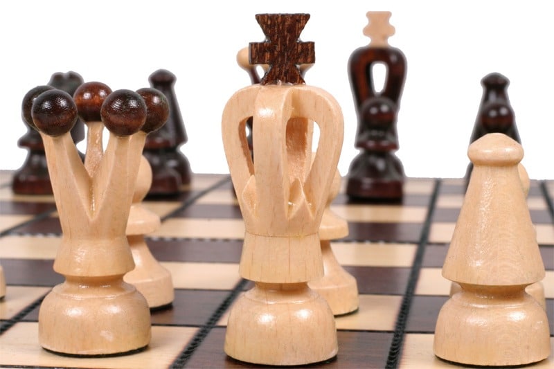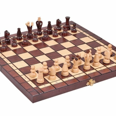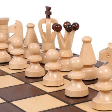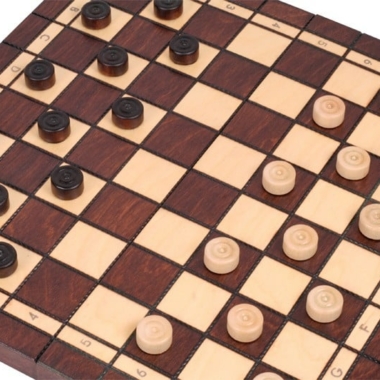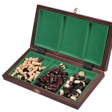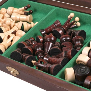 Die Schachfiguren mit einer Königshöhe von 6 cm und die Spielsteine für Dame sind aus Ahornholz gefertigt.