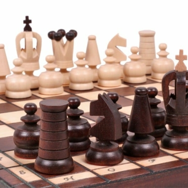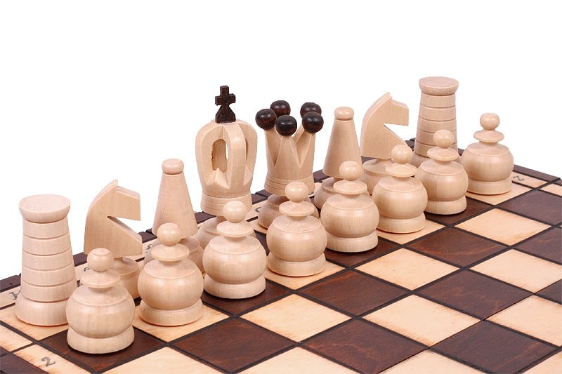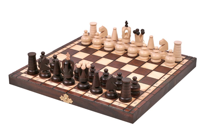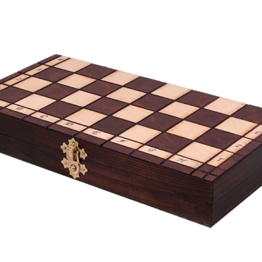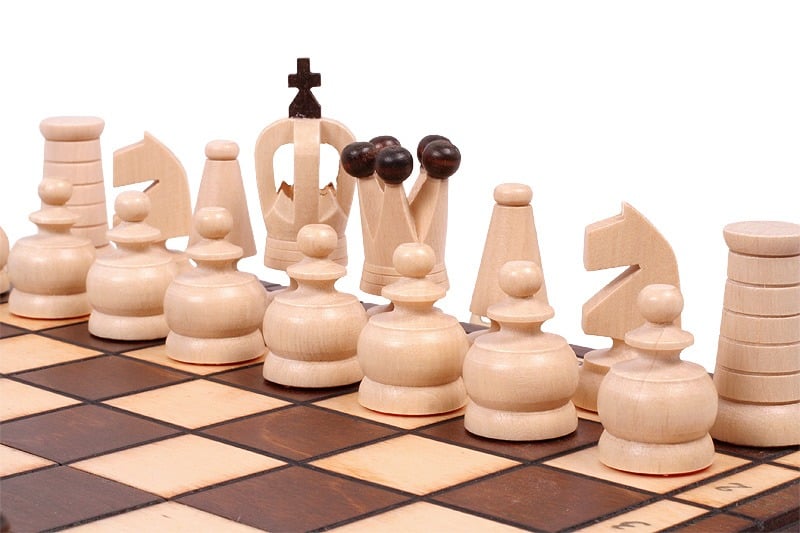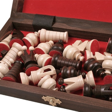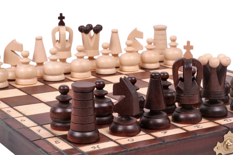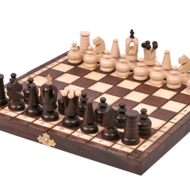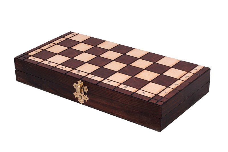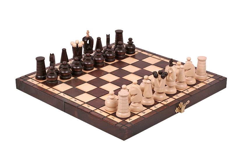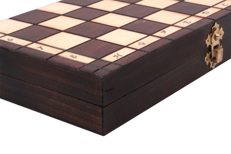 Dank seiner Größe kann dieses faltbare Schachspiel aus Holz auch als Reise-Schachspiel betrachtet werden.