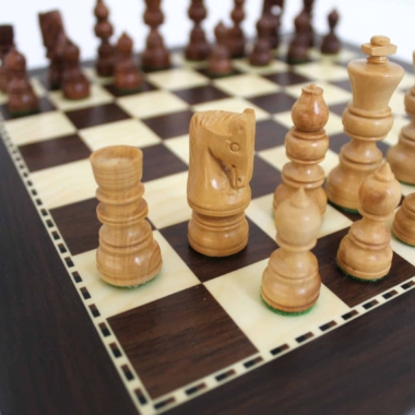 Ein Schachspiel-Set zu einem wettbewerbsfähigen Preis und in kleiner Größe, das sich sehr leicht platzieren lässt.
