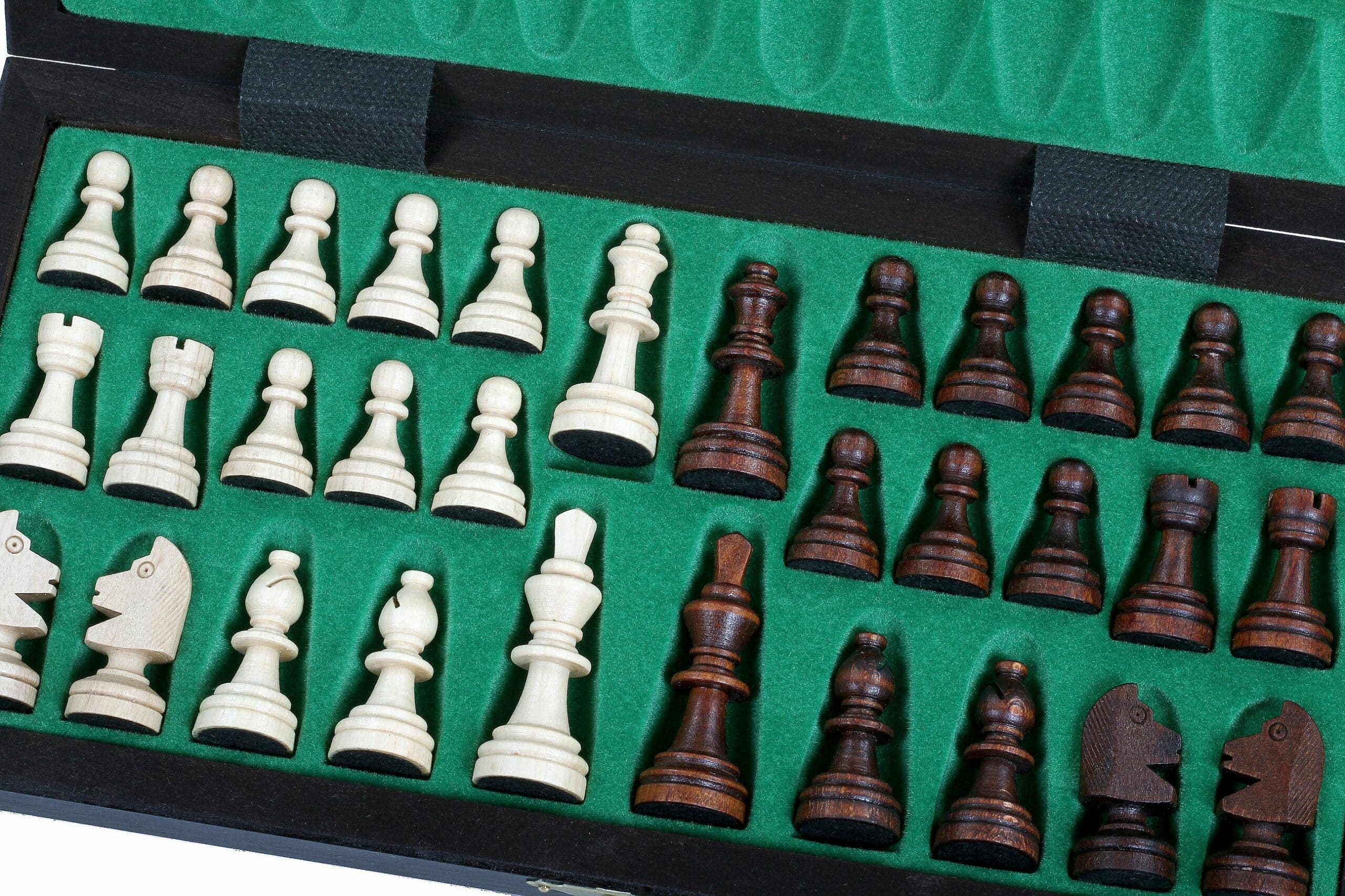 Es ist ausgestattet mit Schachfiguren aus Buchenholz, die eine Könighöhe von 6 cm haben. Sie sind magnetisch, was sehr praktisch für Spiele im Freien ist.