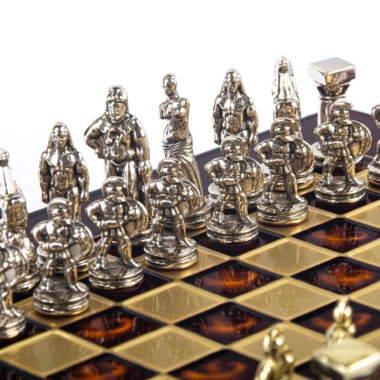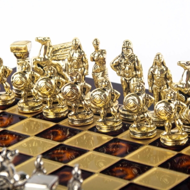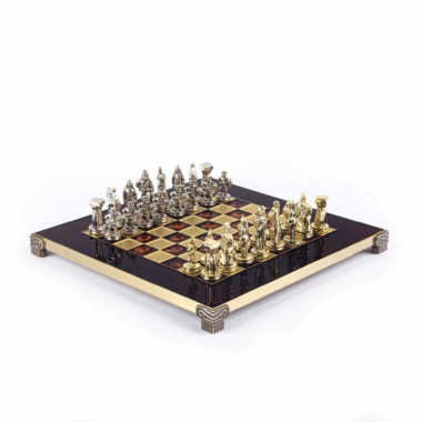 Tauchen Sie ein in die epische Welt des antiken Griechenlands mit diesem Schachspiel Spartanischer Krieger. Jede Schachfigur dieses außergewöhnlichen Sets ist sorgfältig gefertigt, die Höhe des Königs beträgt 5,4 cm. Das hochwertige Metallspielbrett mit bronzefinish, mit den Maßen 28 x 28 cm, ist in 5 Farben zur Auswahl über das Dropdown-Menü erhältlich, um allen Geschmäckern und Einrichtungsstilen gerecht zu werden.