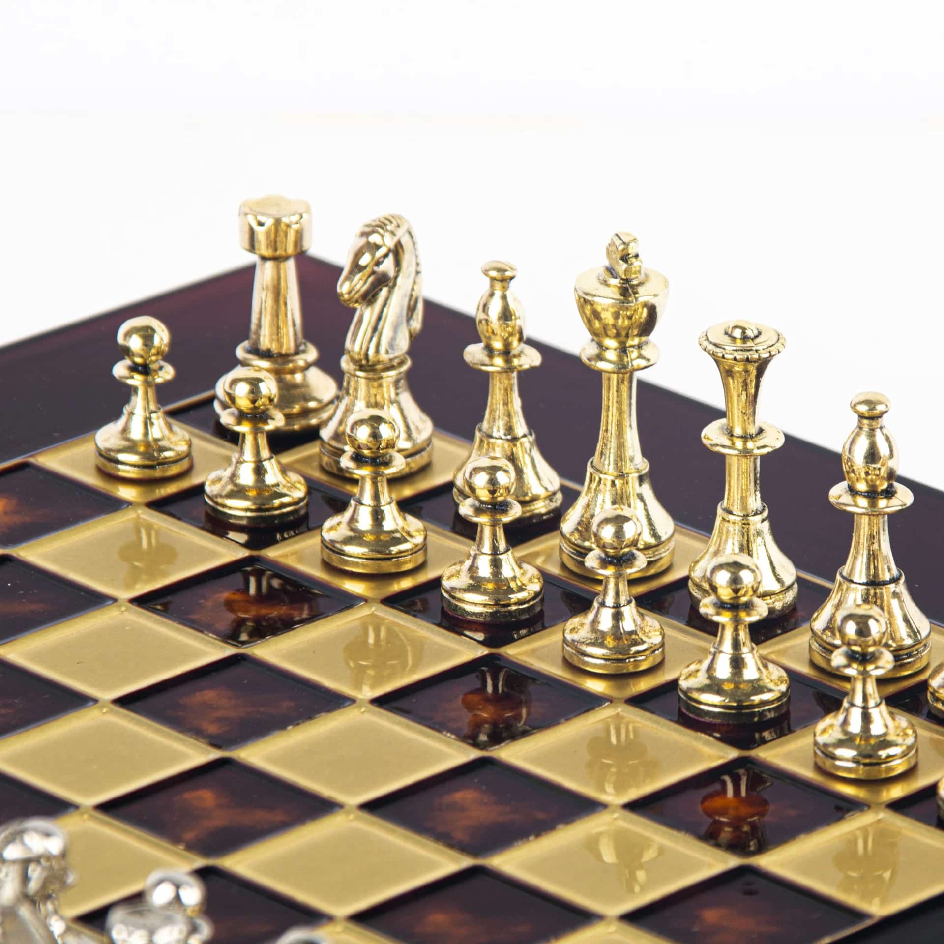 Darüber hinaus ist dieses Set in fünf verschiedenen Farben für das Schachbrett erhältlich, sodass Sie Ihr Spiel nach Ihren Vorlieben anpassen können.