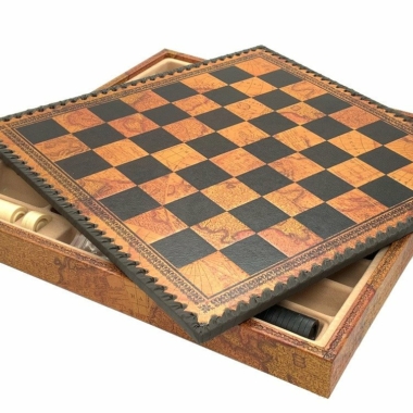 Ausführung: Braun mit Darstellung einer alten Weltkarte , integrierte Aufbewahrung und gefilzt, handgefertigt