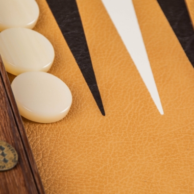 Luxus Backgammon aus Kunstleder in Braun mit Perlensteinen