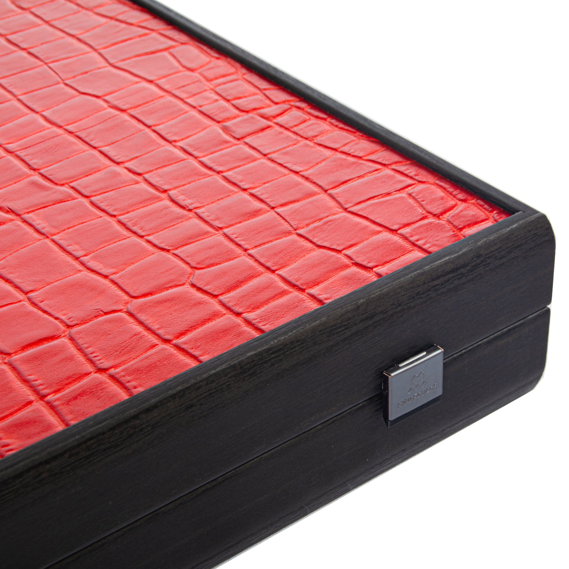 Luxuriöses Backgammon aus rotem Krokodil-Leder
