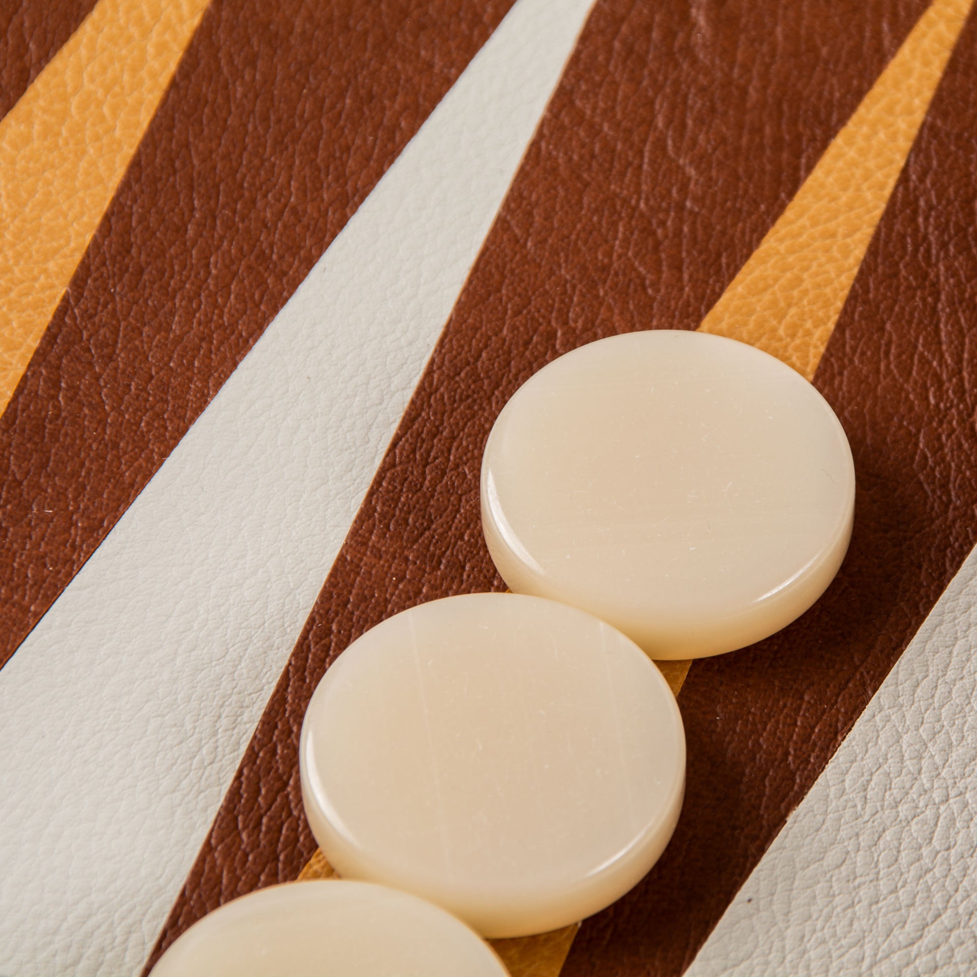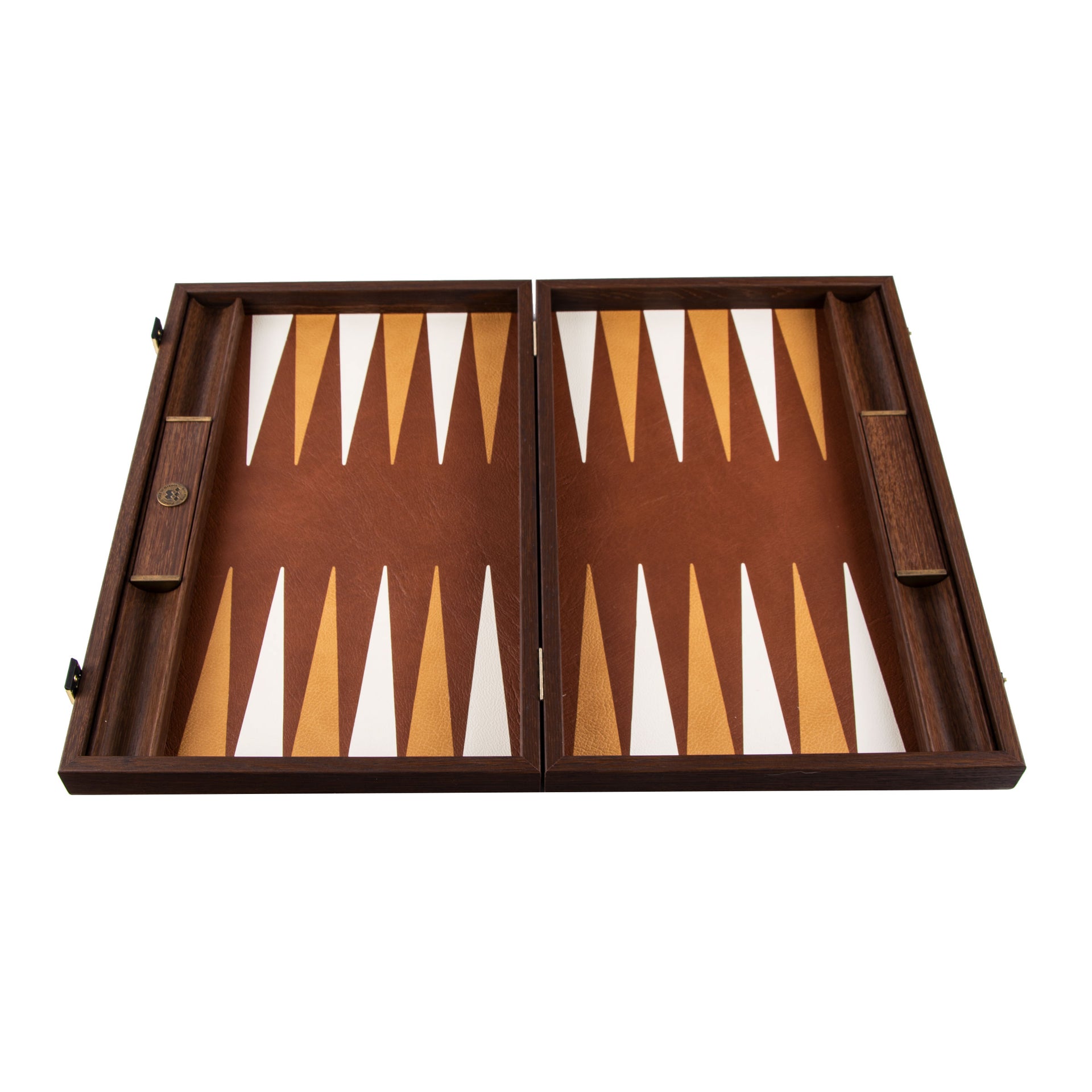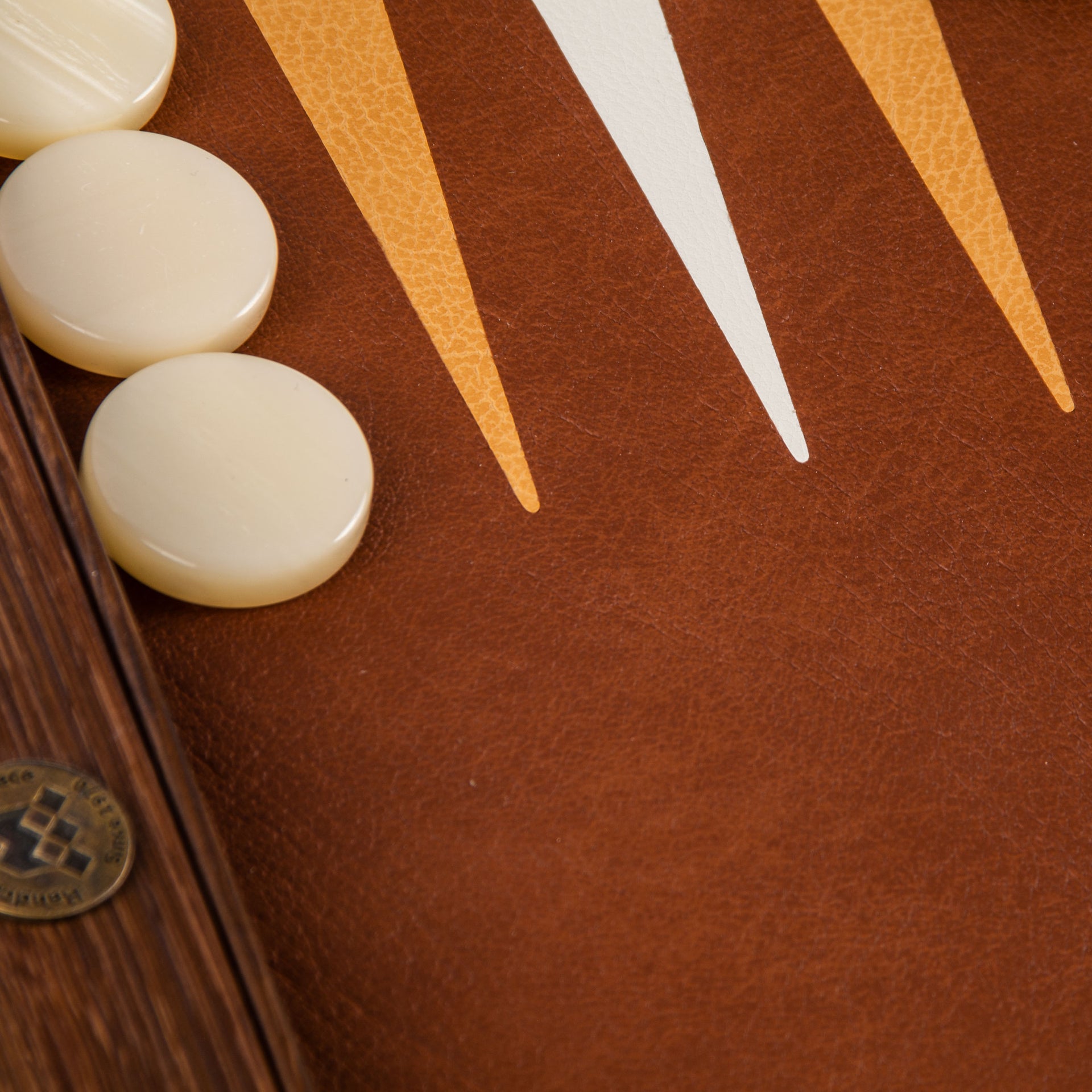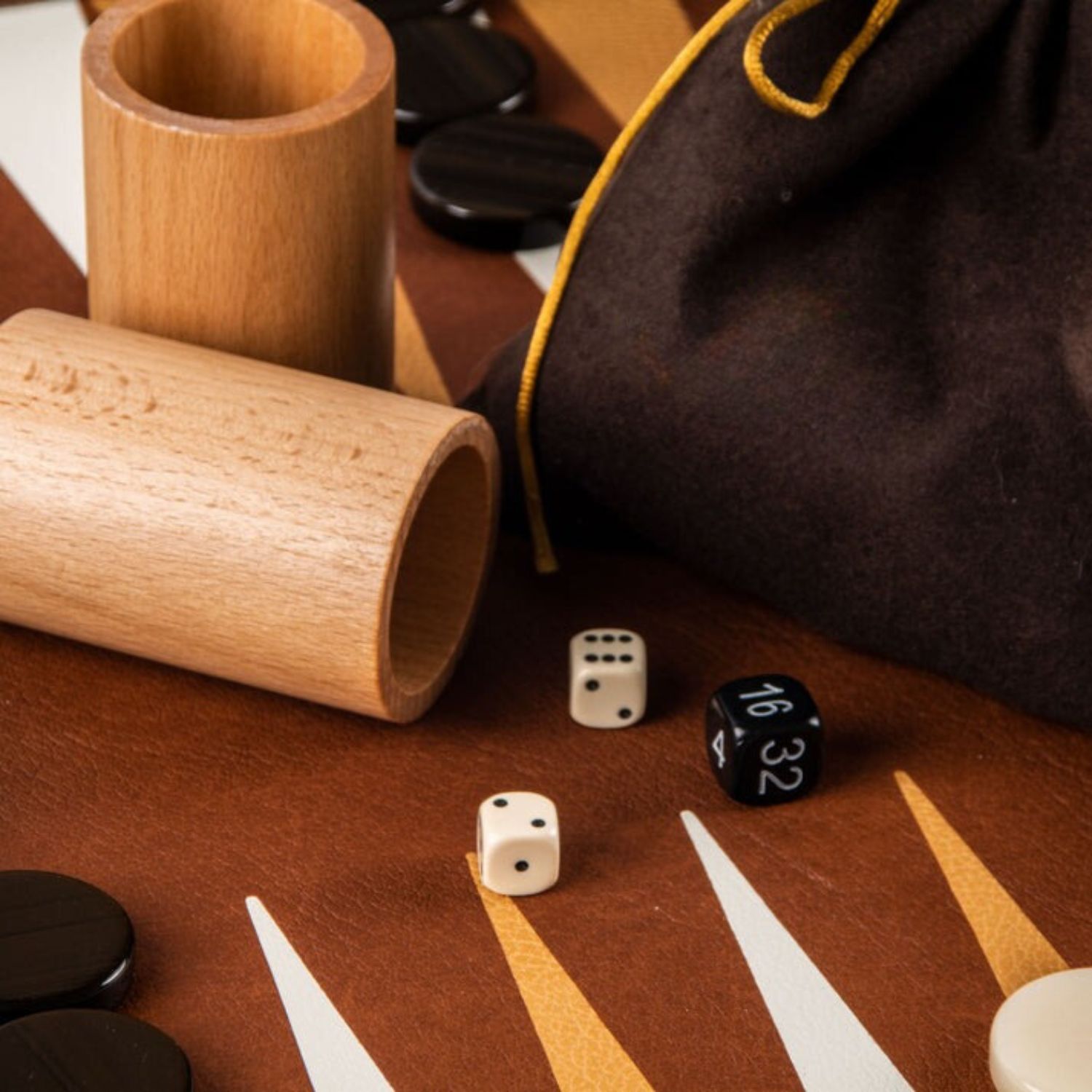 Das Spielbrett besteht aus umweltfreundlichem Leder von hoher Qualität und bietet eine angenehme und widerstandsfähige Spieloberfläche. Die Außenseite des Sets ist mit echtem Leder überzogen, was dem Backgammon ein raffiniertes und authentisches Aussehen verleiht. Der Rahmen, gefertigt aus Schichtholz, fügt eine robuste Note hinzu und bewahrt gleichzeitig eine zeitlose Ästhetik.