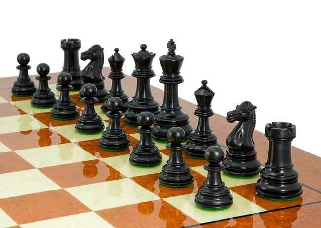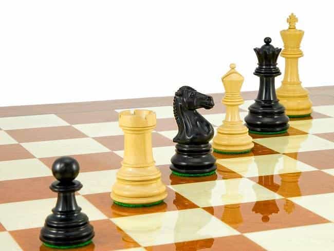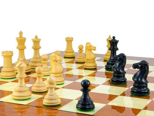 Diese Schachfiguren sind handgeschnitzt aus hochwertigem Ebenholz. Die vier Ritter sowie der Rest der Schachfiguren wurden sorgfältig von Hand geschnitzt, was offensichtlich ist, wenn man sich die Fotografien ansieht. Alle Figuren sind geschickt verarbeitet und poliert und gut ausbalanciert.