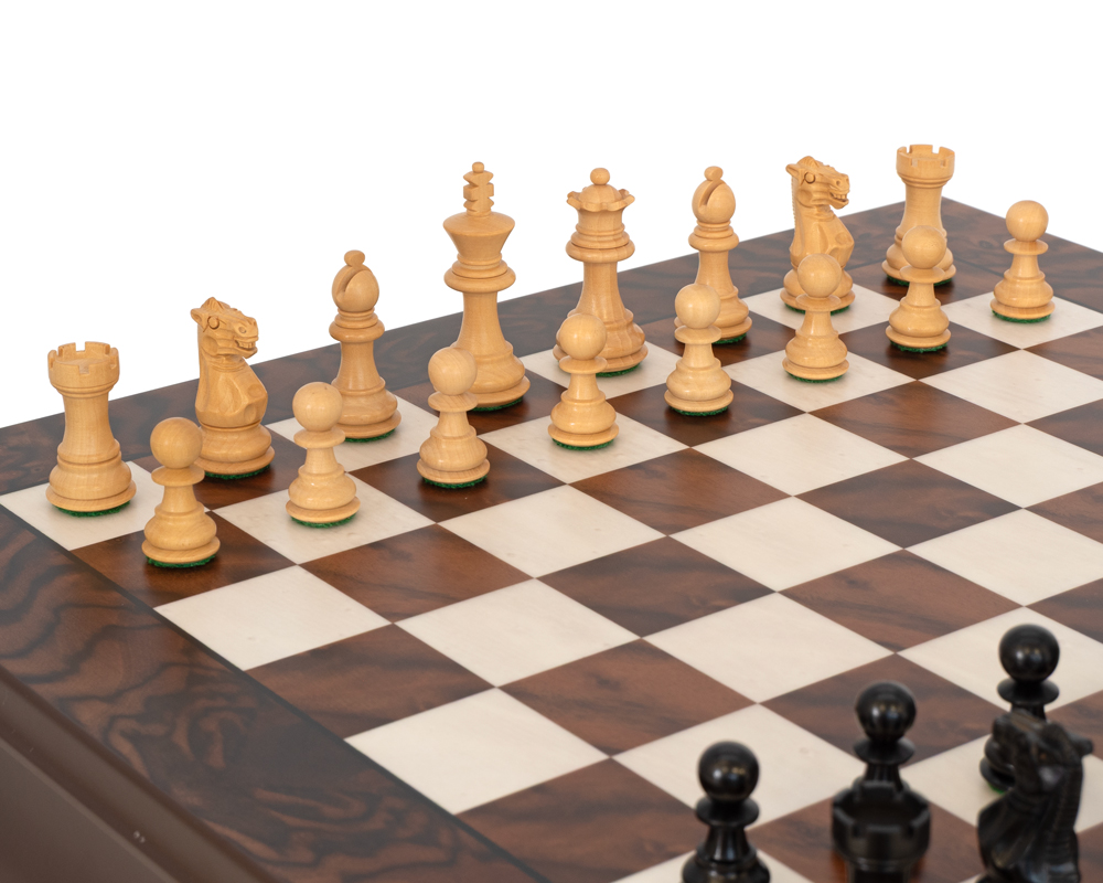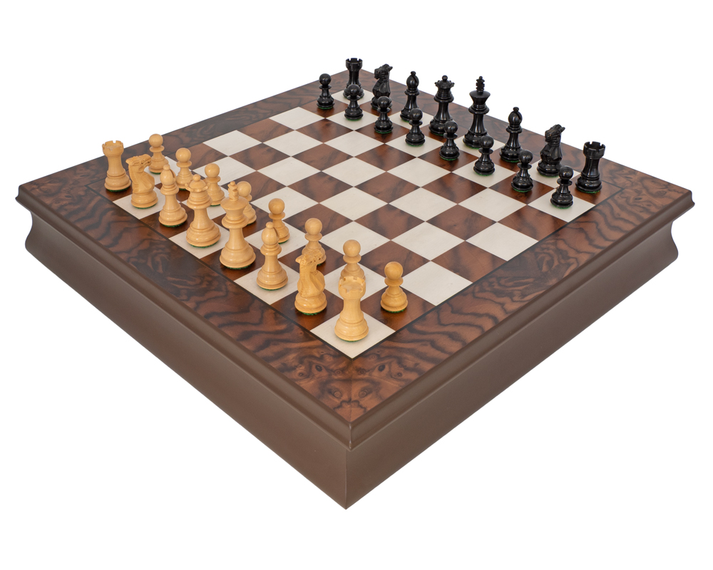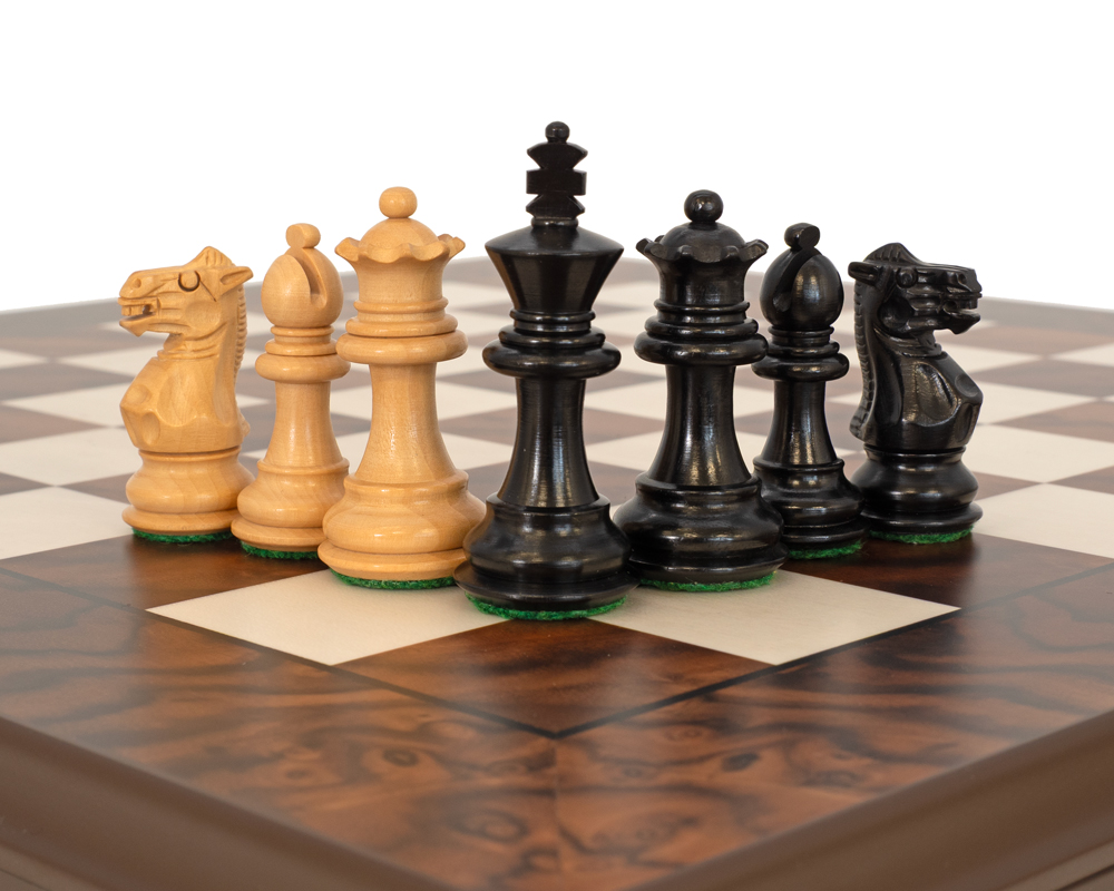Luxus-Schachset Kingsclere aus Ebenholz und Nussbaum mit Aufbewahrung