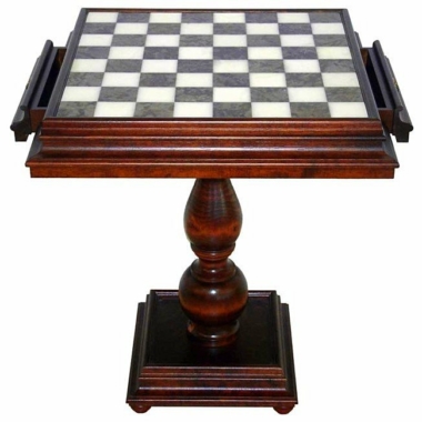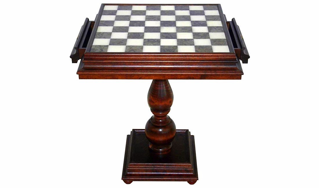 Dieser Tisch profitiert von einer hochwertigen handwerklichen Verarbeitung, das Endergebnis ist von großer Schlichtheit und wird die hochwertigen Schachspiele wunderbar ergänzen. Der Tisch verfügt über zwei Aufbewahrungsschubladen für die Schachfiguren.