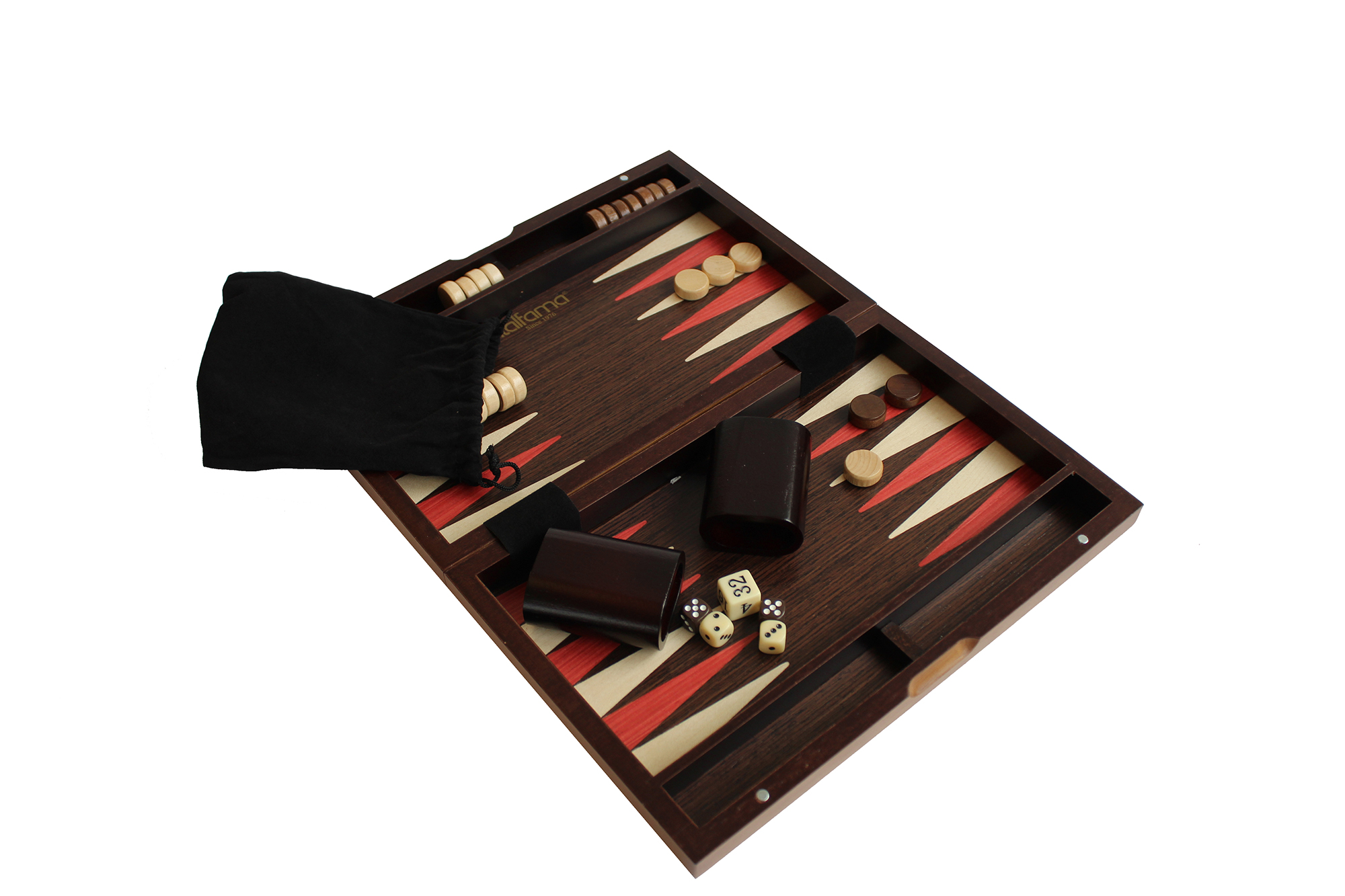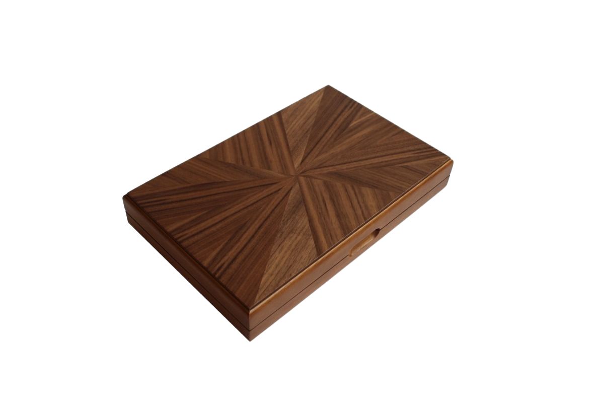 Magnetisches Backgammon aus Nussbaum und Heidekraut – Klappbox mit magnetischen Spielsteinen
