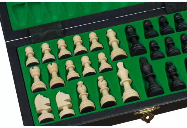 Magnetisches Schachspiel aus schwarzem Holz 28×28 cm – Faltbar für Reisen