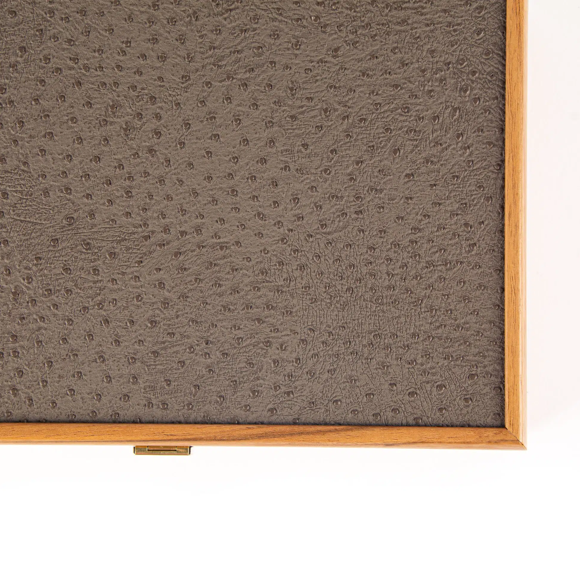 Das Spielbrett besteht aus grauem Kunstleder, das mit Pfeilen in Gelbbraun und Elfenbein verziert ist und Ihrer Spielerfahrung einen Hauch von Raffinesse verleiht. Die Außenseite, die aus Kunstleder im Straußeneffekt gestaltet ist, garantiert eine außergewöhnliche Haltbarkeit und bietet gleichzeitig ein angenehmes Gefühl beim Berühren.