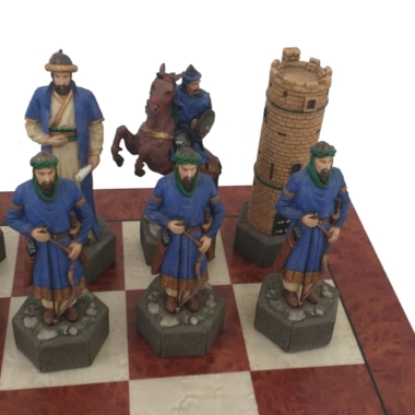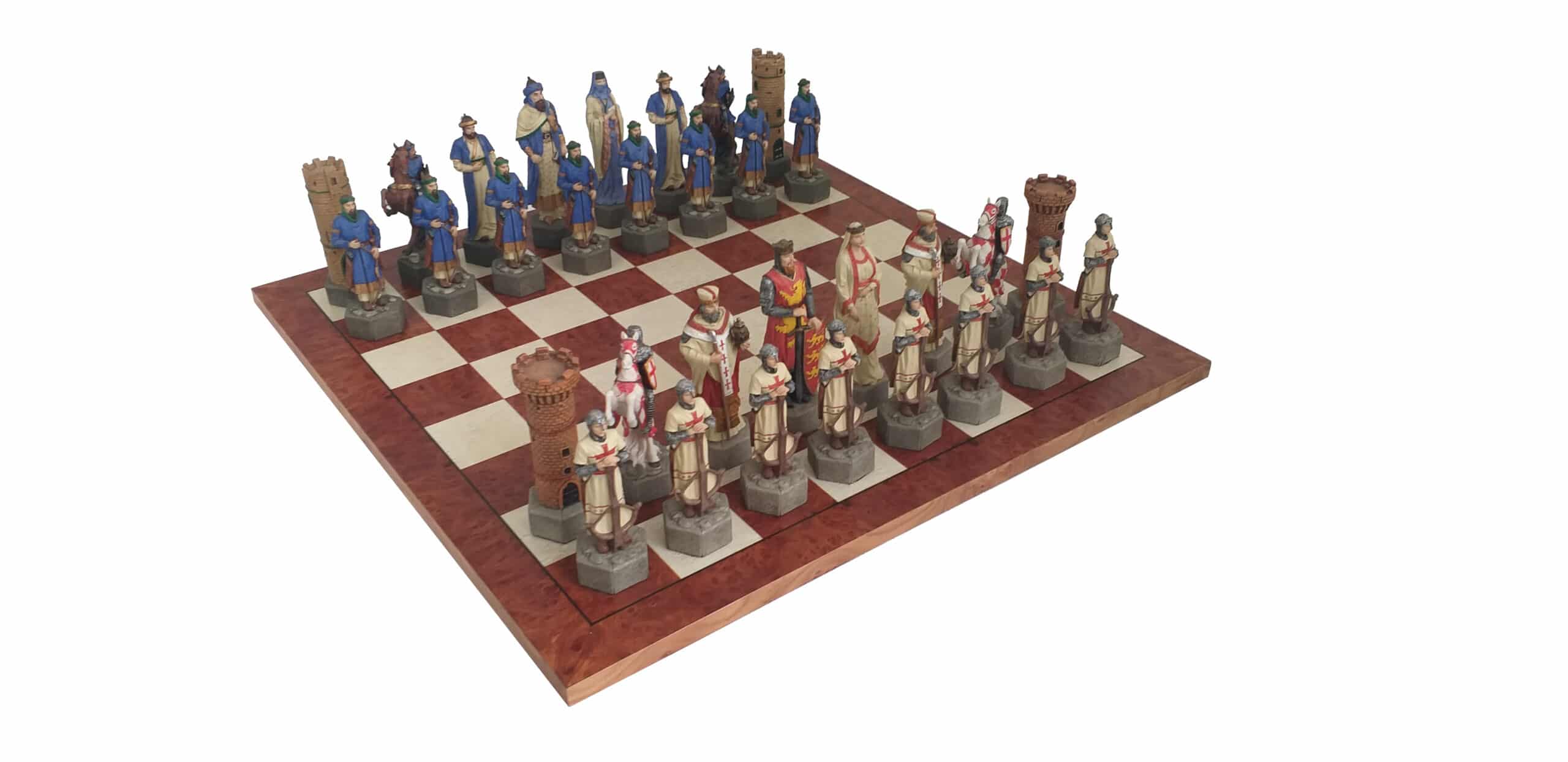 Ein großes Schachspiel-Set, das im Thema der Kreuzzüge und aus hochwertigen Materialien gefertigt ist.