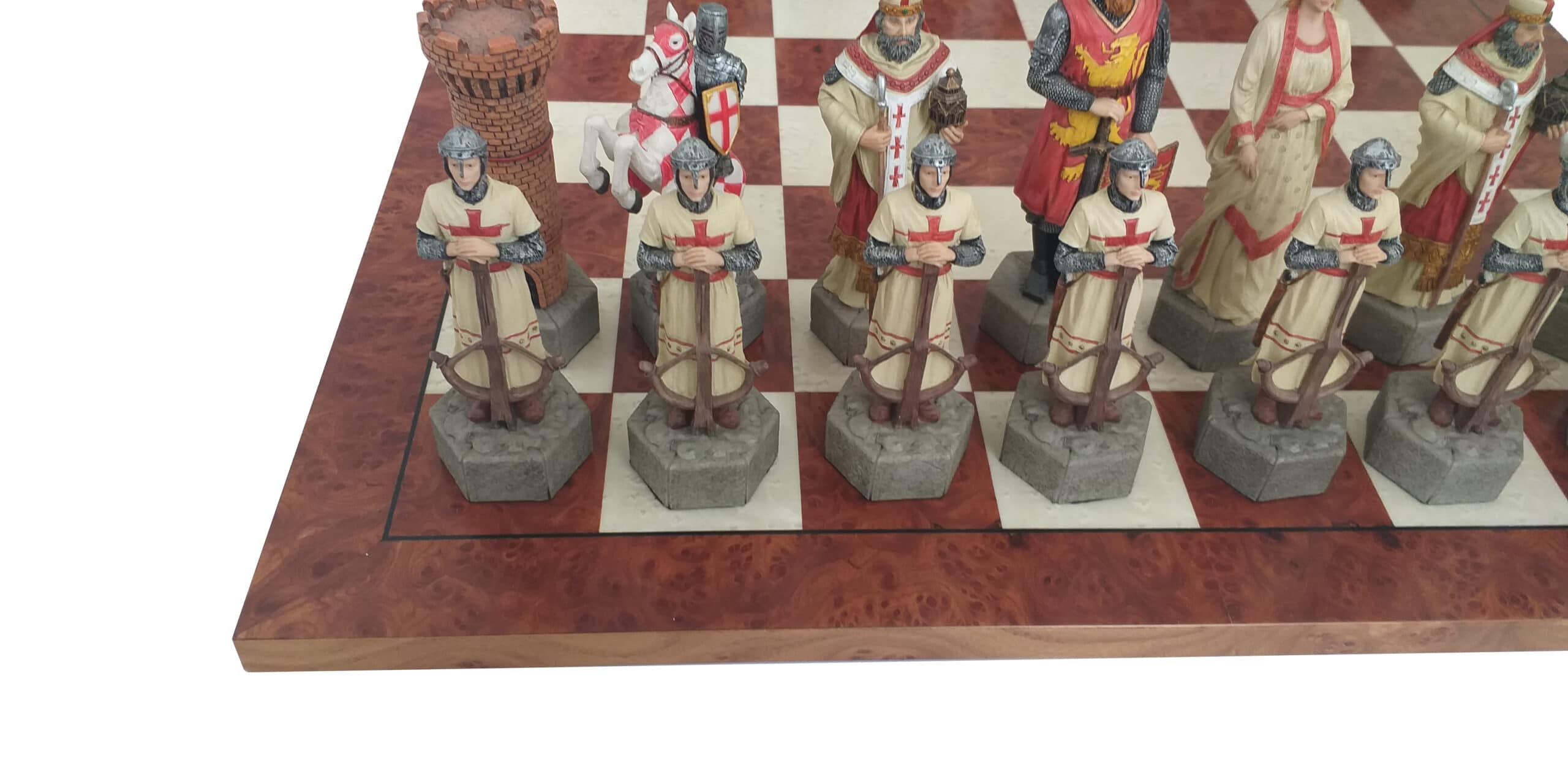 Riesen-Schachspiel Die Kreuzzüge aus Harz und Schachbrett aus Ulmen- und Heideholz