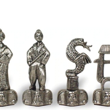 Von großartigen Metallfiguren in Übergröße mit einer Königshöhe von 10 cm, die das Thema der Krieger der Edo-Zeit, auch Samurai genannt, aufgreifen.