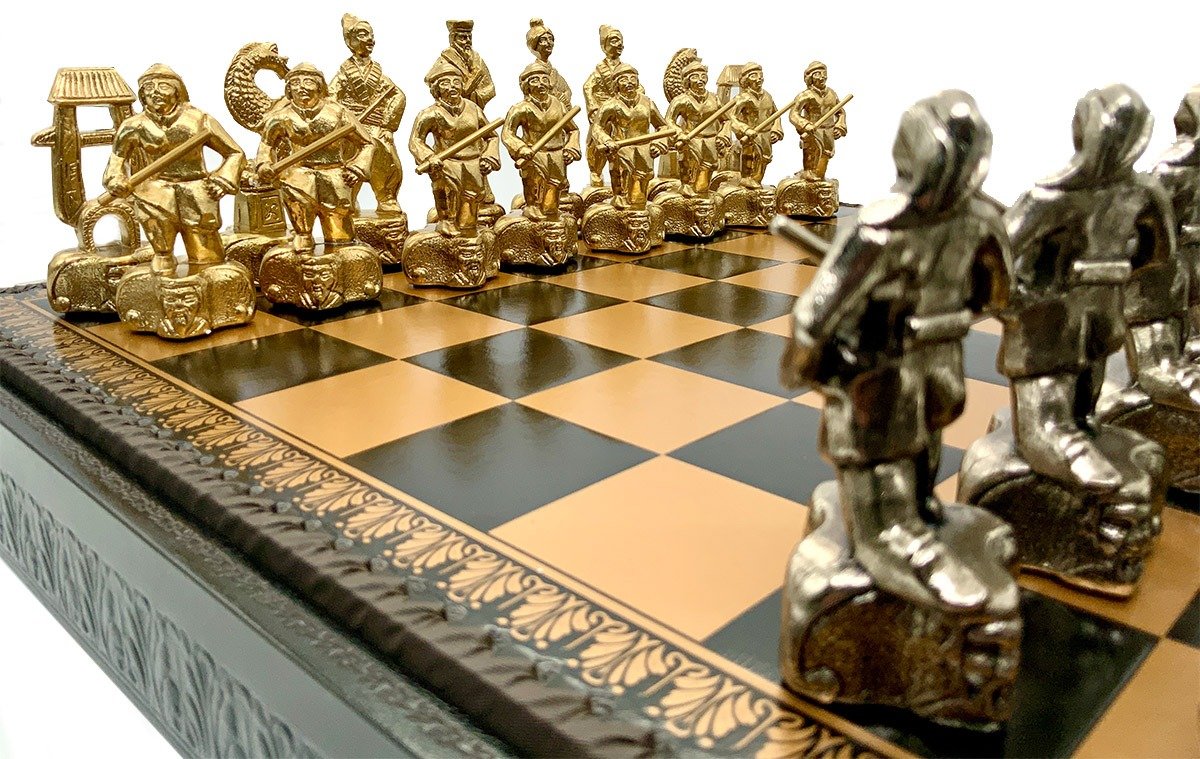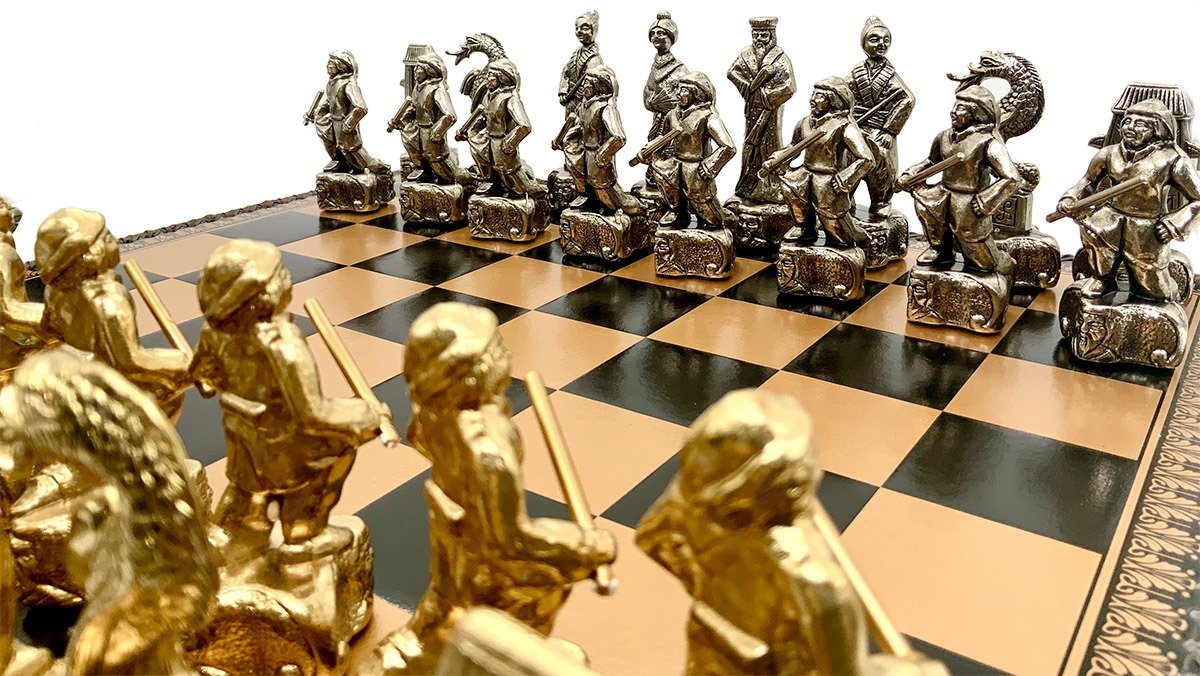 Ein Schachspiel-Set mit modernem Design in asiatischem Thema, das angenehm zu spielen ist und auch ein schönes Dekorationsobjekt darstellt.
