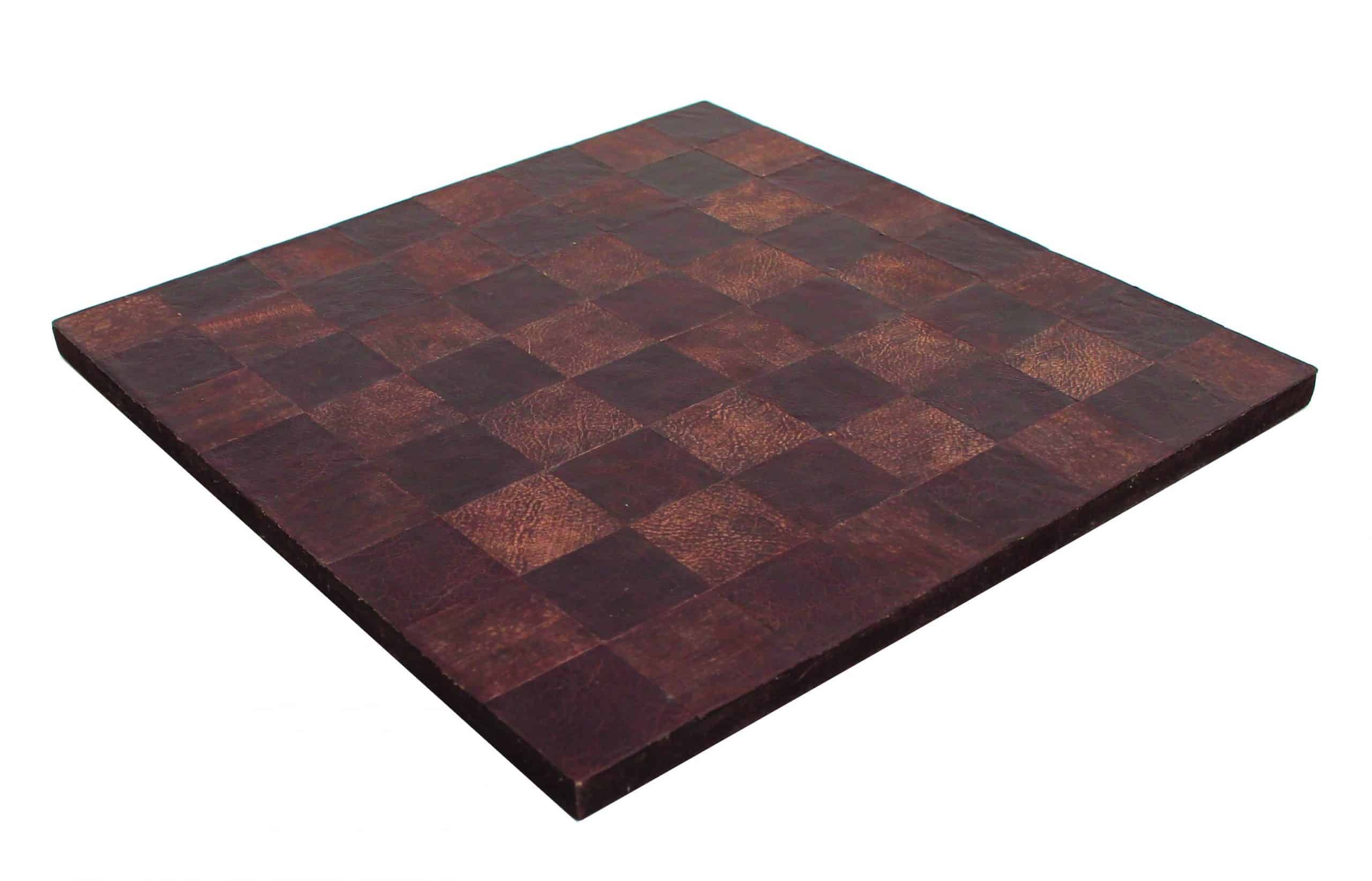 Dieses Schachbrett ist ein kleines Kunstwerk, die Handwerker haben das Leder und seine Farben so bearbeitet, dass ein echtes Schachbrett entstanden ist.