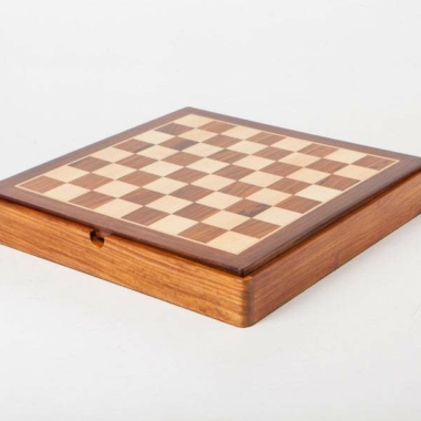 Schönes, handgefertigtes Schachbrett aus massivem, goldenem Rosenholz in kleiner Größe. Die Farbe des Holzes, dunkelbraun mit ausgeprägter Maserung, macht dieses Schachbrett zu einer sehr guten Wahl für alle, die die natürliche Schönheit des Holzes schätzen.