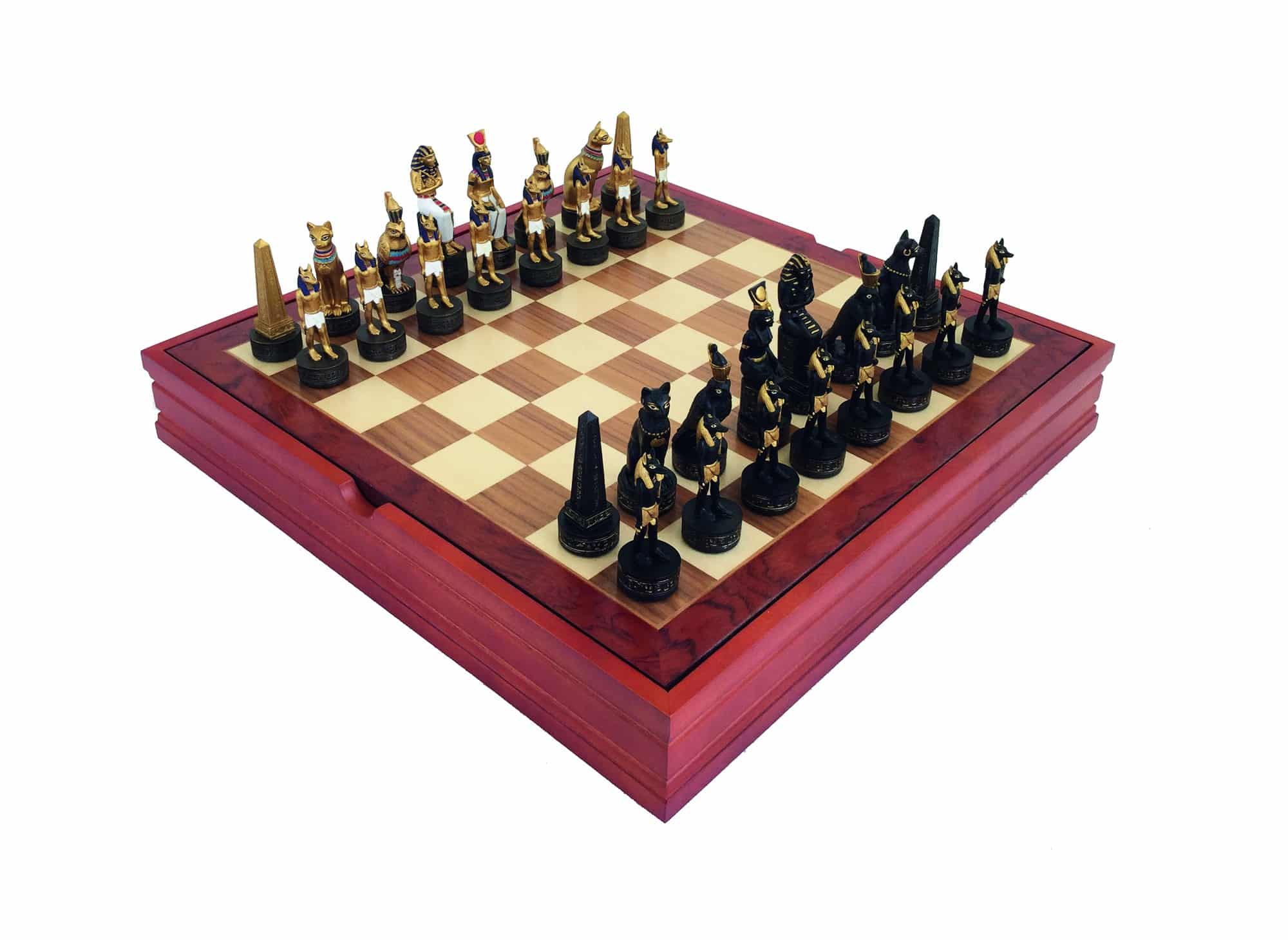 Schachfiguren Ägypten und Schachbrett aus Holz mit Aufbewahrung