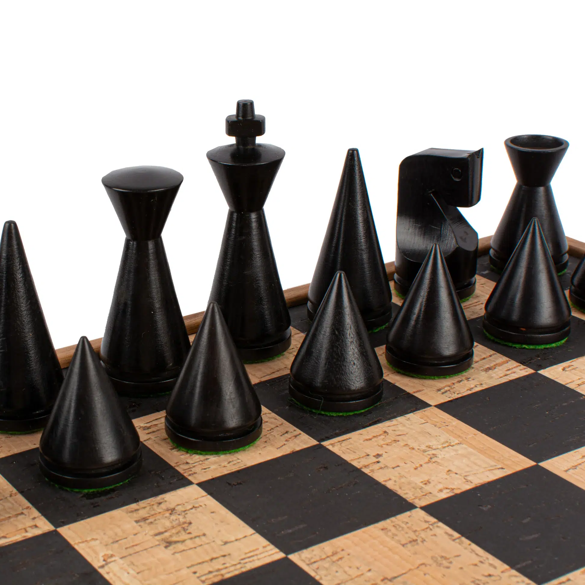 Schachfiguren aus Ebenholz und Schachbrett aus Holz und Kork 40×40 cm mit integriertem Stauraum