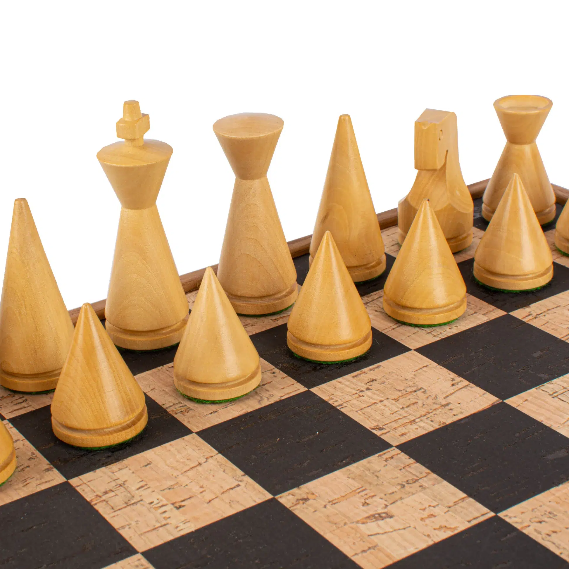 Dieses raffinierte Schachspiel-Set umfasst ein Schachbrett von 40 x 40 cm, das elegantes laminiertes Holz mit einem ökologischen Korkspielbrett kombiniert. Die 4 cm großen Felder wechseln sich zwischen schwarzem Kork und natürlichem Kork ab und bieten eine ansprechende, ästhetische und angenehme Spieloberfläche.