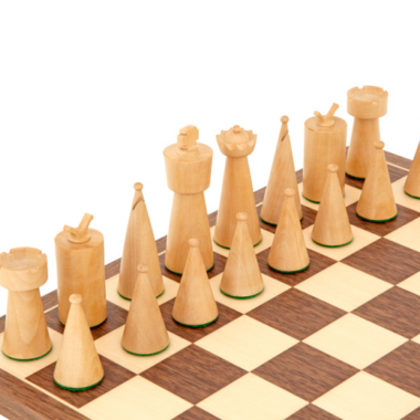 Das Art Déco-Design ist eine klassische Interpretation des Staunton-Stils, der heute sehr verbreitet ist. Jede Figur ist aus massivem Rosenholz gedreht und dann mit natürlichen Wachsen poliert, was eine einfach faszinierende Farb- und Maserungstiefe schafft. Sie haben eine Könighöhe von 8,9 cm.