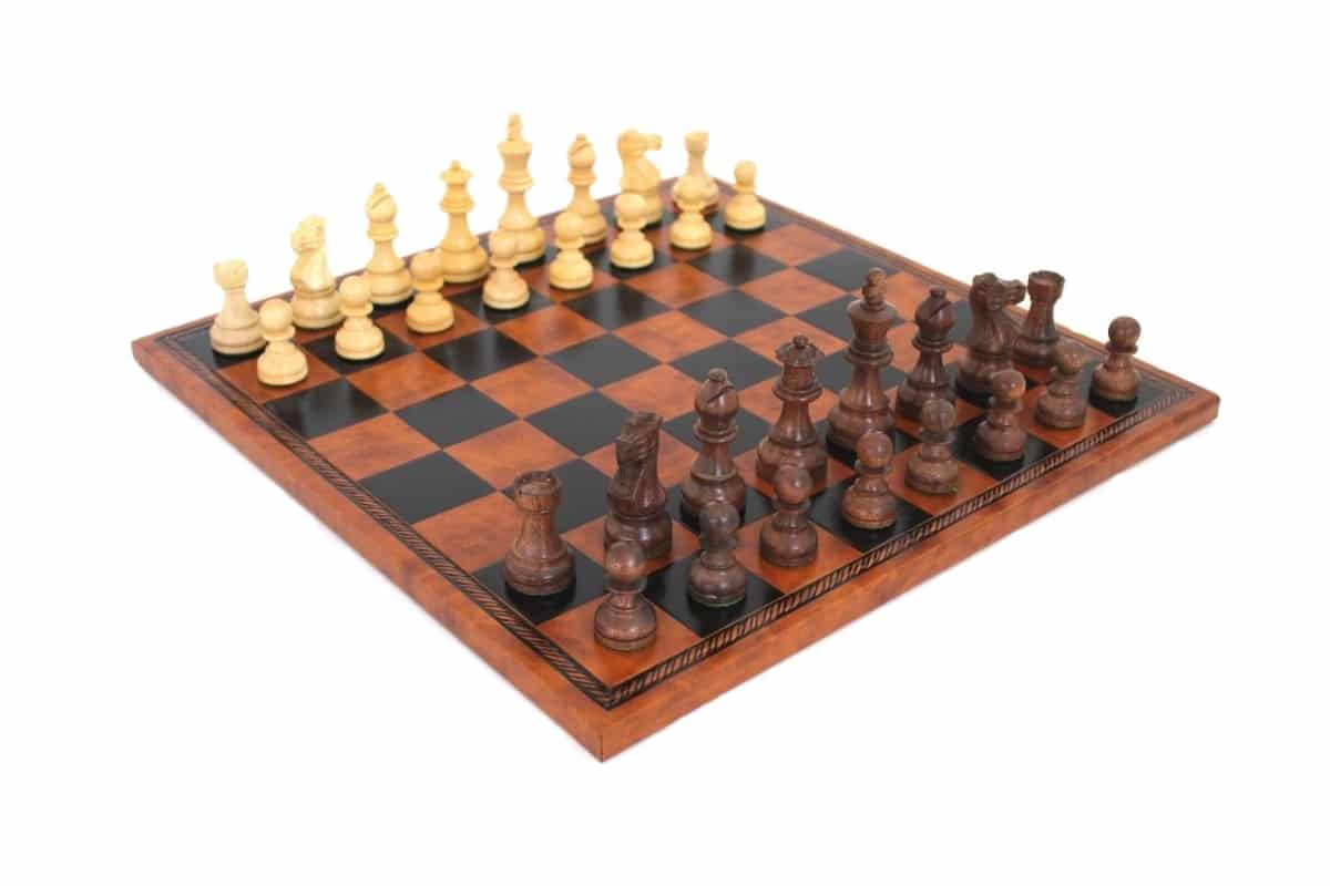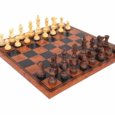 Schachspiel aus Akazienholz und Schachbrett aus Kunstleder