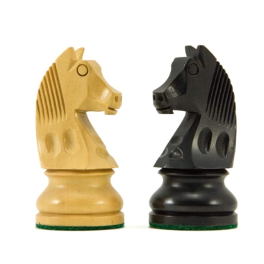 Aufgrund ihrer Größe haben wir diese Schachfiguren, die die Besonderheit haben, einen Kopf-niedrig-Reiter zu besitzen, mit einem Schachbrett aus Mahagoni und Birke mit den Abmessungen 50 x 50 cm kombiniert.